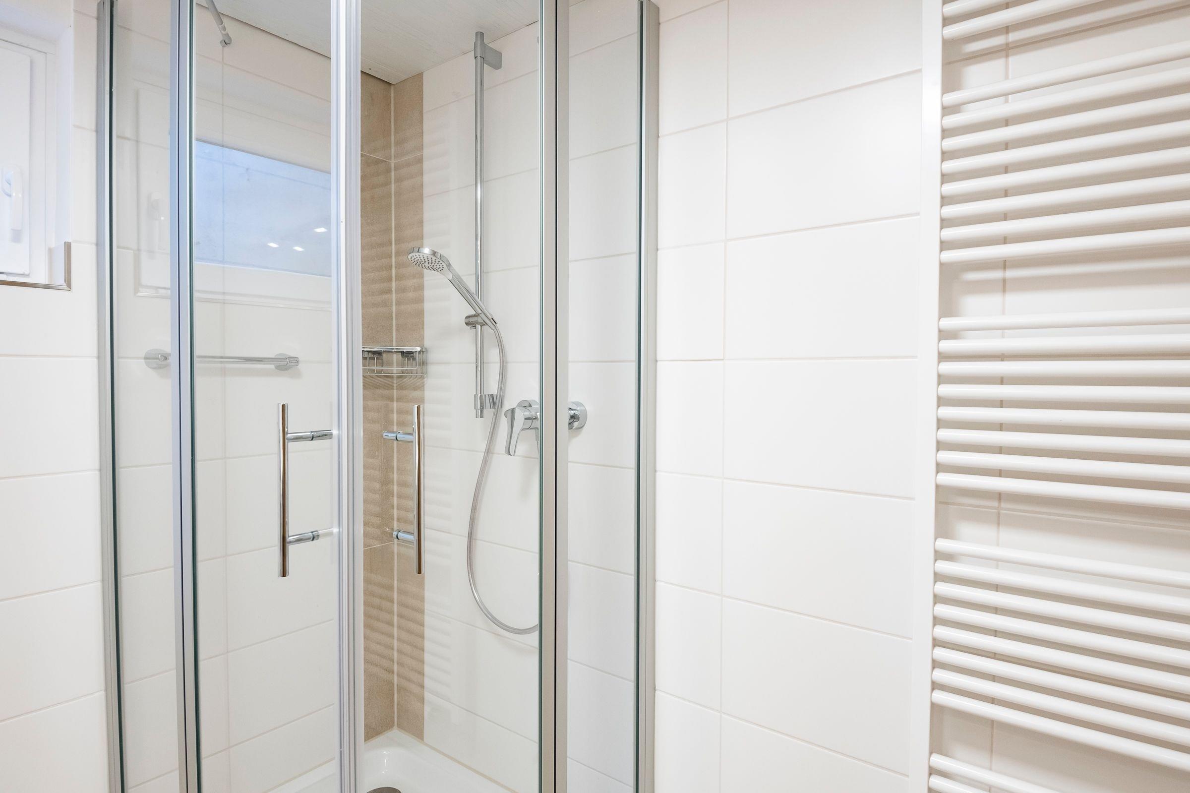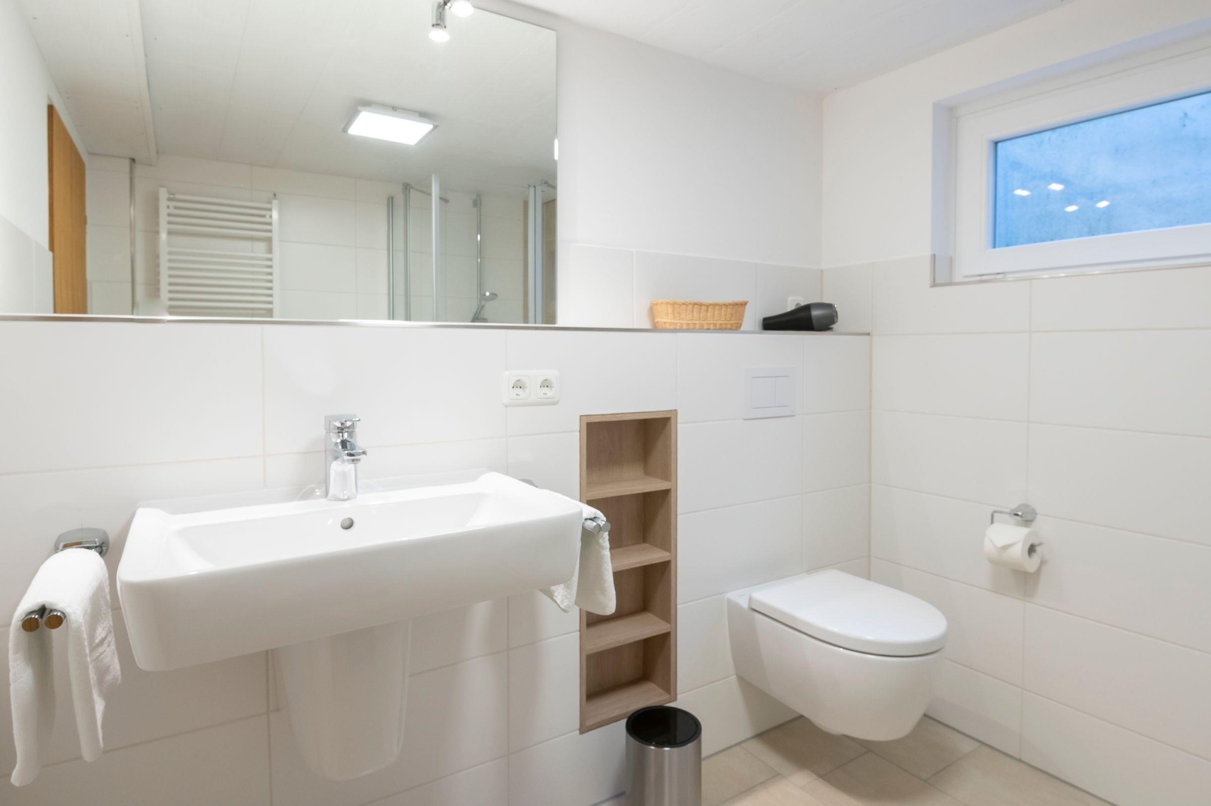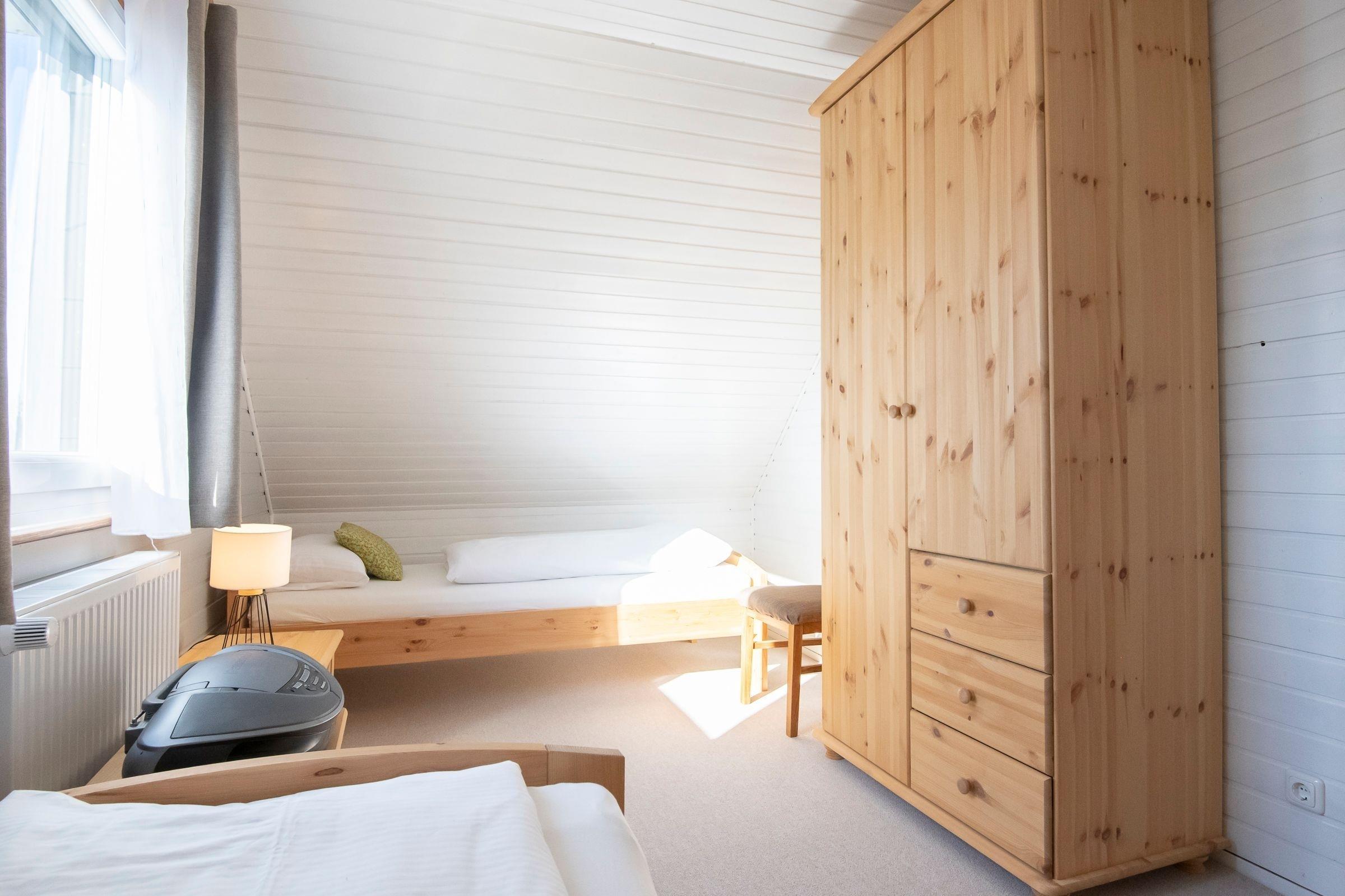 Das Ferienhaus verfügt über 2 moderne Badezimmer. Die Handtuchheizung sorgt für kuscheliges Frottee, die bodentiefe Dusche ermöglicht auch nach langen Strandspaziergängen einen bequemen Einstieg in das kühle Nass. Ein Föhn liegt für Sie bereit. Für Ihre angenehme Nachtruhe stehen 6 Schlafplätze in 3 Schlafzimmern bereit: Das erste Schlafzimmer verfügt über ein bequemes Doppelbett (2x 90x200 cm) und bietet zusätzlich genügend Platz für ein Kinderreisebett. Im zweiten Schlafzimmer laden 2 Einzelbetten (je 90x200 cm) ins Land der Träume ein. Für die ausreichende Verdunklung sorgen in diesem und im vorher genannten Schlafzimmer die Außenrollläden oder die Vorhänge. Im dritten und letzten Schlafzimmer im Untergeschoss wartet ebenfalls ein gemütliches Doppelbett auf Sie. Die Fenster können mit Vorhängen verdunkelt werden. In allen 3 Schlafzimmern steht jeweils 1 Kleiderschrank mit ausreichend Stauraum für Sie zur Verfügung.