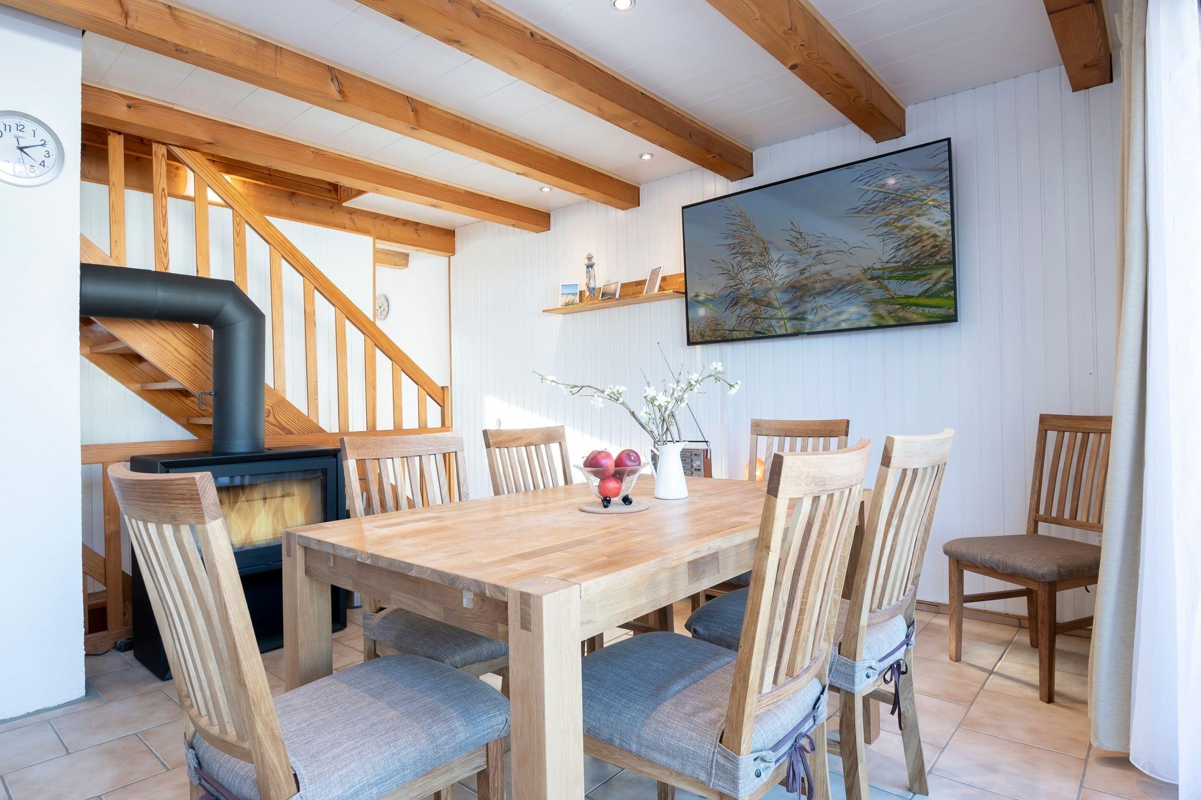Im gemütlichen Wohnzimmer sorgt ein Kamin für kuschelig warme Abende. Zu Ihrer Musik durchs Wohnzimmer tanzen oder einen Kinoabend mit der ganzen Familie erleben? Der CD-Player, das Radio, der DVD Player sowie der Blue-Ray-Player machen es möglich. Die separate Küche lässt die Herzen der Hobbyköche höher schlagen. Zur Ausstattung gehören ein Herd mit 4-Platten Ceranfeld, ein Backofen sowie ein Kühlschrank mit Gefrierfach. Eine Senseo-Kaffeepad-Maschine sorgt für den Kaffeegenuss. Die Spülmaschine übernimmt anschließend gerne den Abwasch für Sie. Sie möchten in Ihrem Urlaub Ihren Lieblingskuchen nicht missen? Ein Mixer, eine Küchenwaage und auch eine Springform gehören ebenfalls zur Ausstattung.