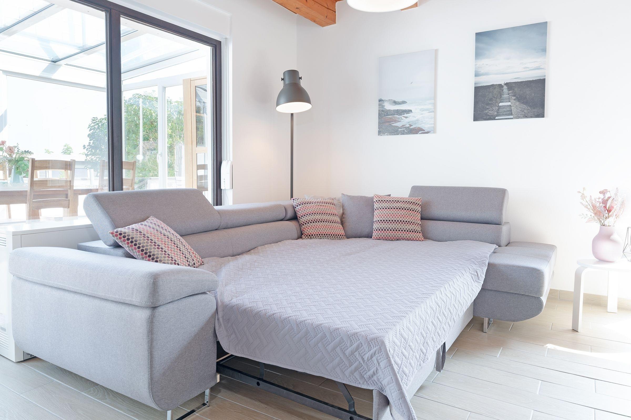 Wohnzimmer (EG): Schlafsofa (125x195 cm), TV, Verdunkelung (Rollo)