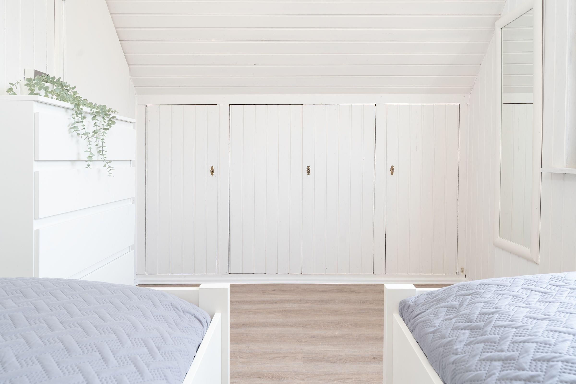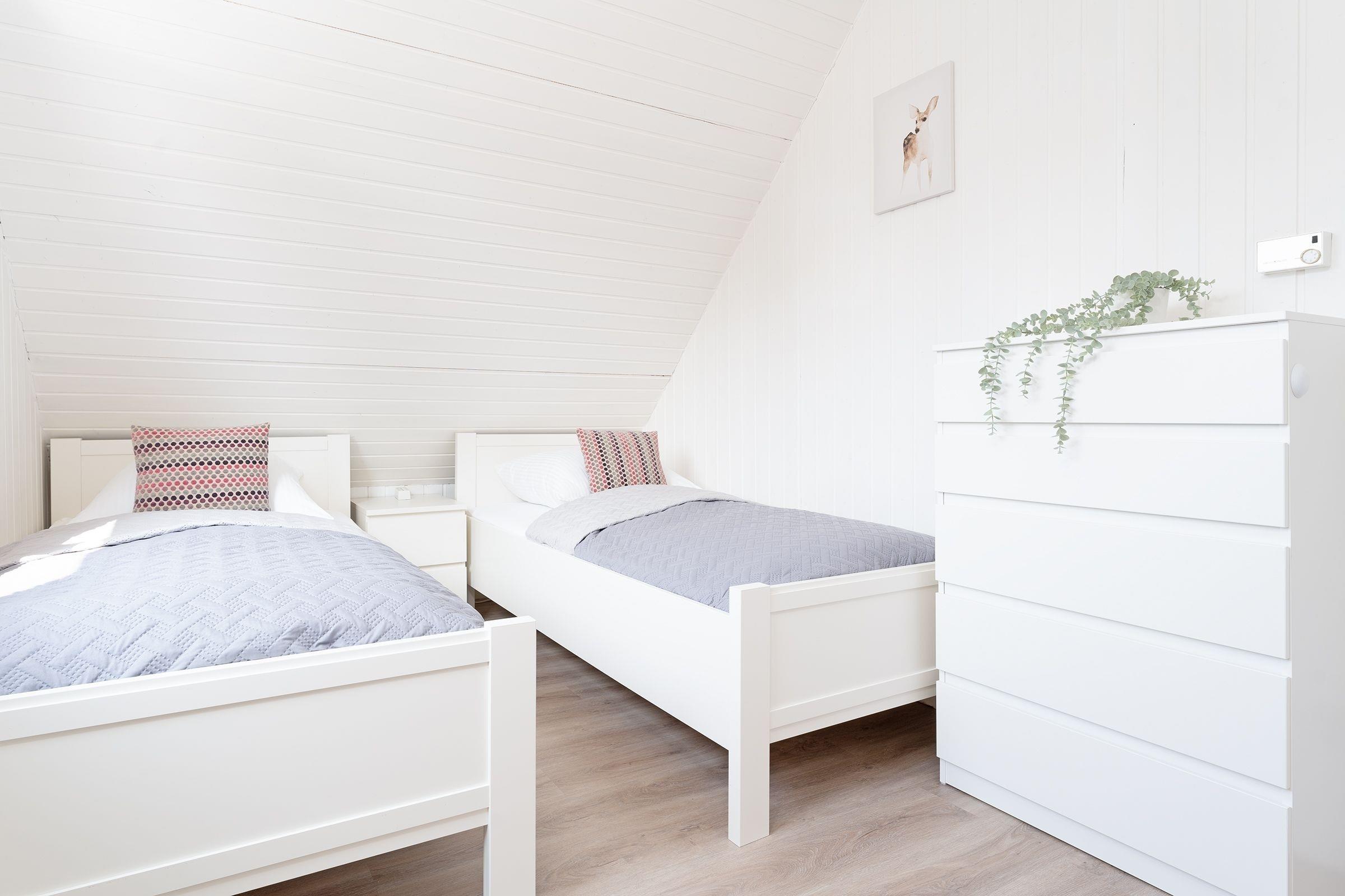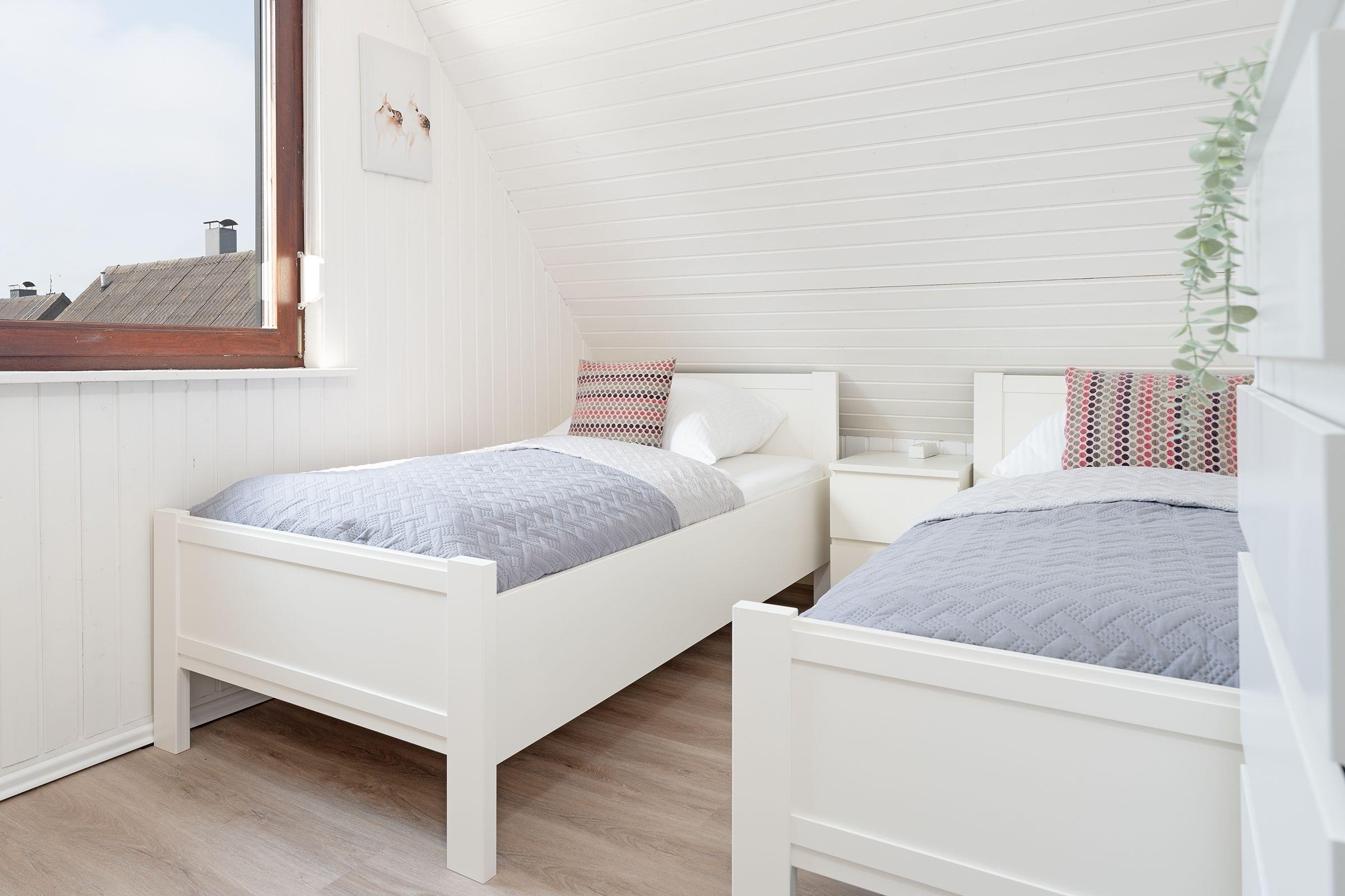 Schlafzimmer 2 (1.OG): 2 Einzelbetten (je 90x200 cm), Kleiderschrank, Verdunkelungsmöglichkeit: Rollläden