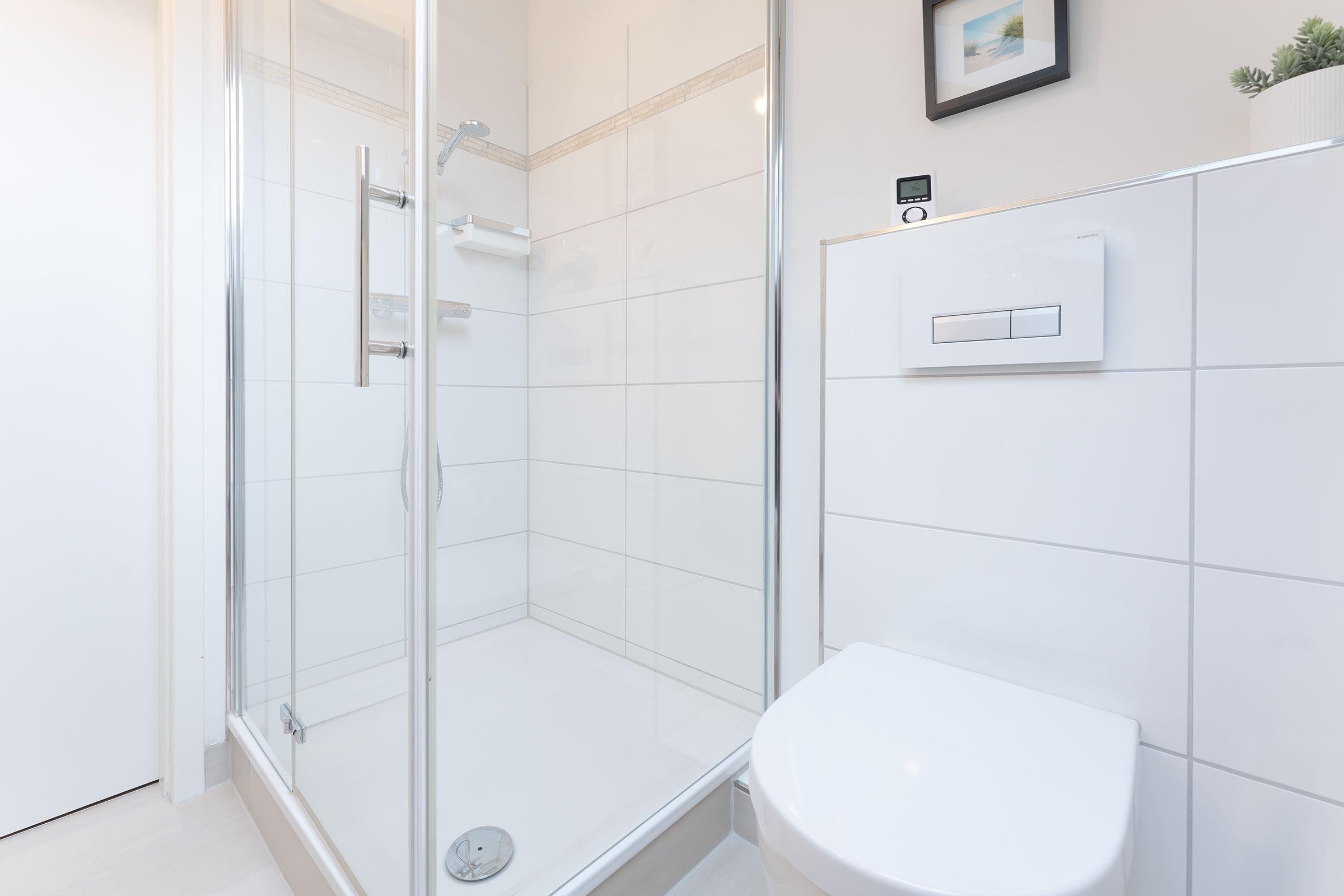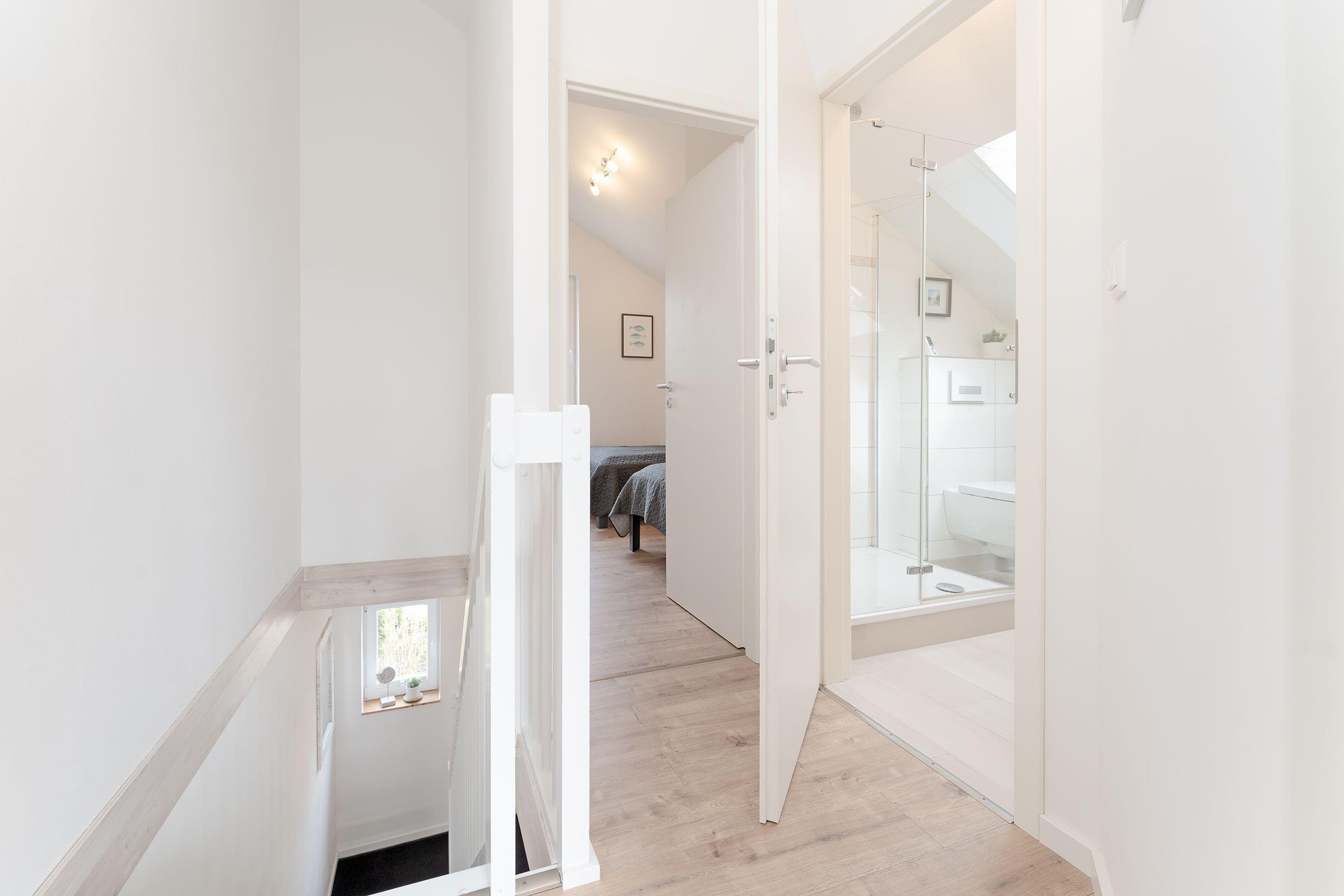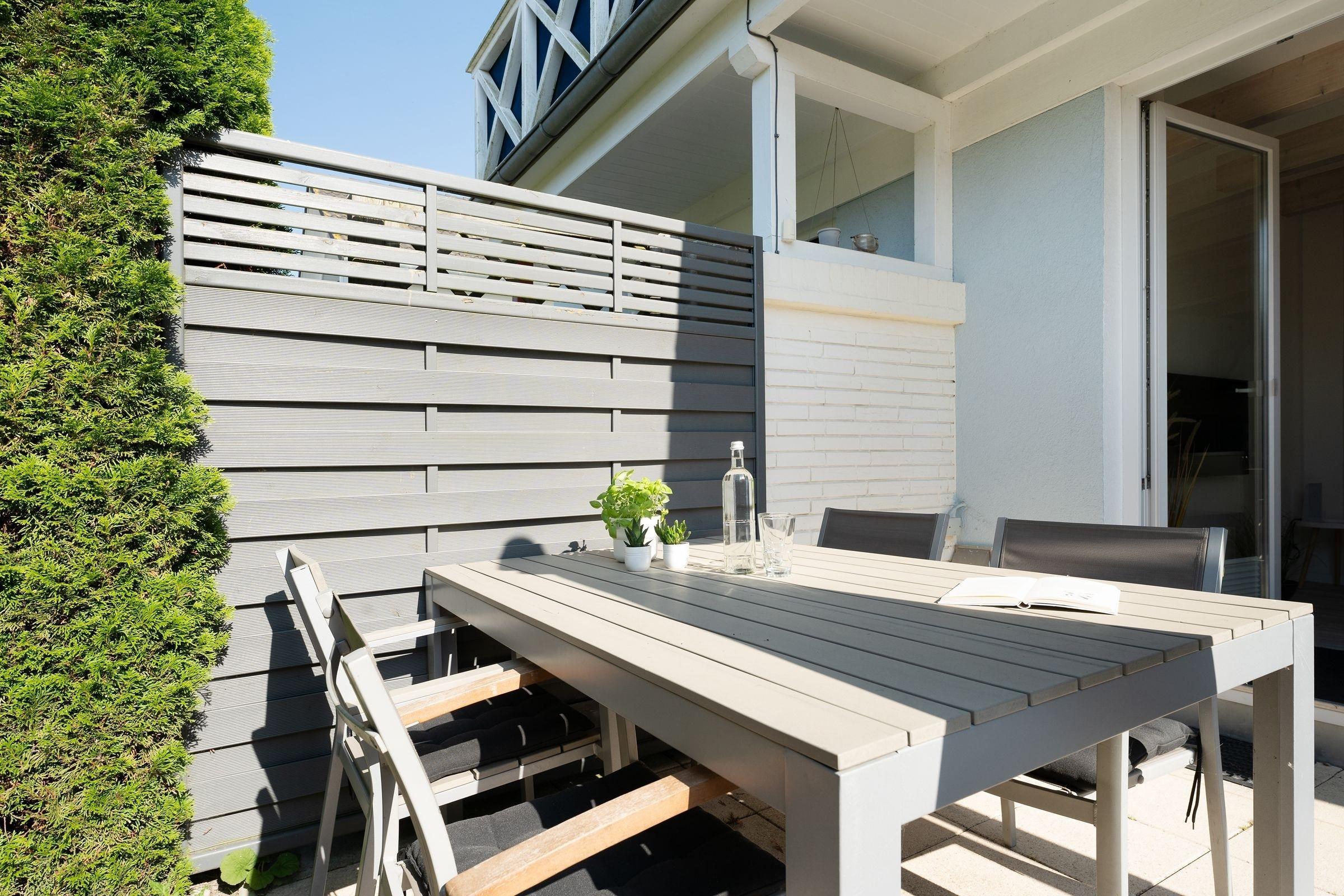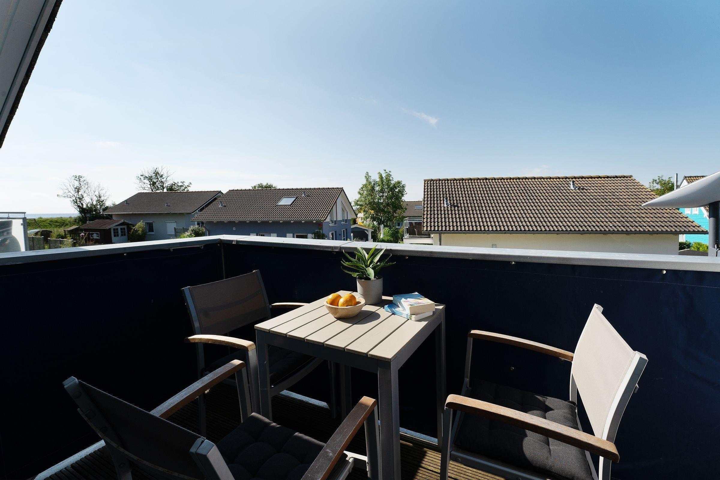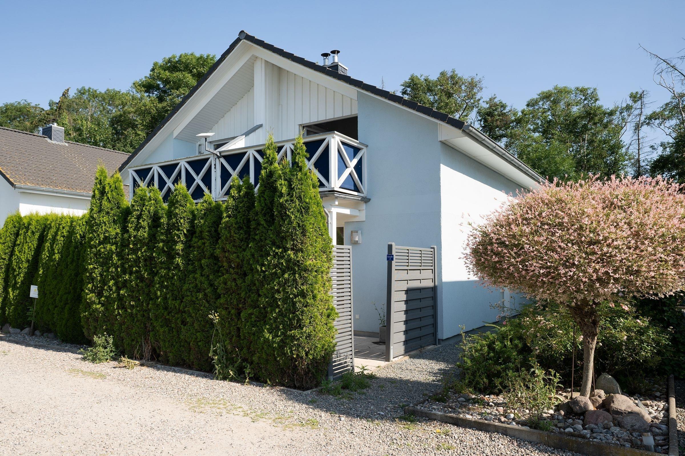 Wer sich im Urlaub gern an der frischen Luft aufhält, ist hier richtig: Das Haus Seeadler 4 liegt schön idyllisch, der Ostseestrand ist rund 300 Meter entfernt. Im hellen Wohnbereich sorgen offene Balken für eine wohlige Atmosphäre. Nehmen Sie Platz auf der großzügigen Sofalandschaft mit Blick aufs TV-Gerät – oder ins Grüne. Die beiden sonnigen Terrassen sind möbliert und im Garten darf gern gegrillt werden. Auch in der modernen Küche mit Induktionsherd und Spülmaschine können Sie Ihre Lieblingsspeisen zubereiten. Genießen Sie diese auf dem süßen Balkon oben. Erholsame Nächte versprechen die beiden Schlafzimmer, eins ist mit einem Boxspring-Doppelbett (2x 90x200 cm) und eins mit 2 Einzelbetten (je 90x200 cm) ausgestattet. Das moderne Badezimmer oben mit Tageslicht verspricht einen guten Start in den neuen Tag. Im Untergeschoss gibt es ein Gäste-WC mit einem Waschtrockner.