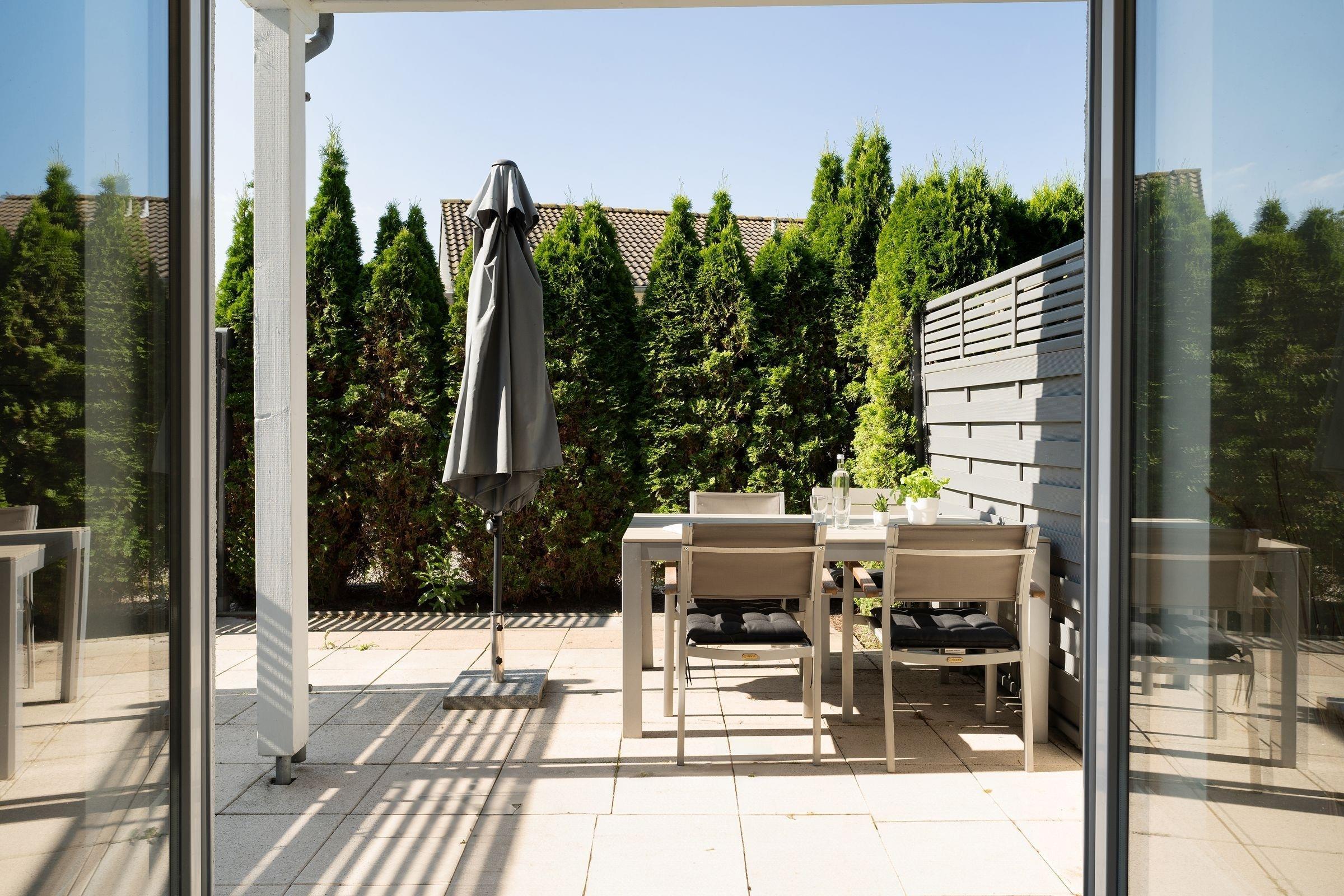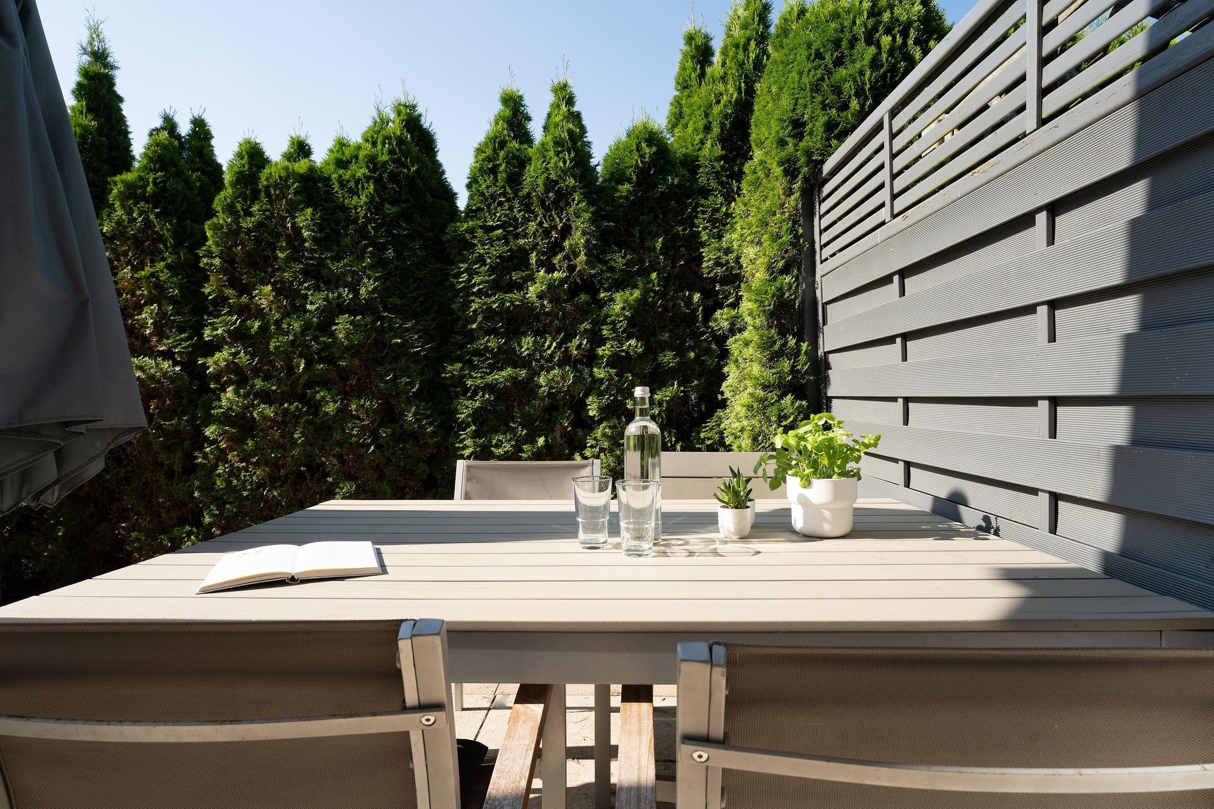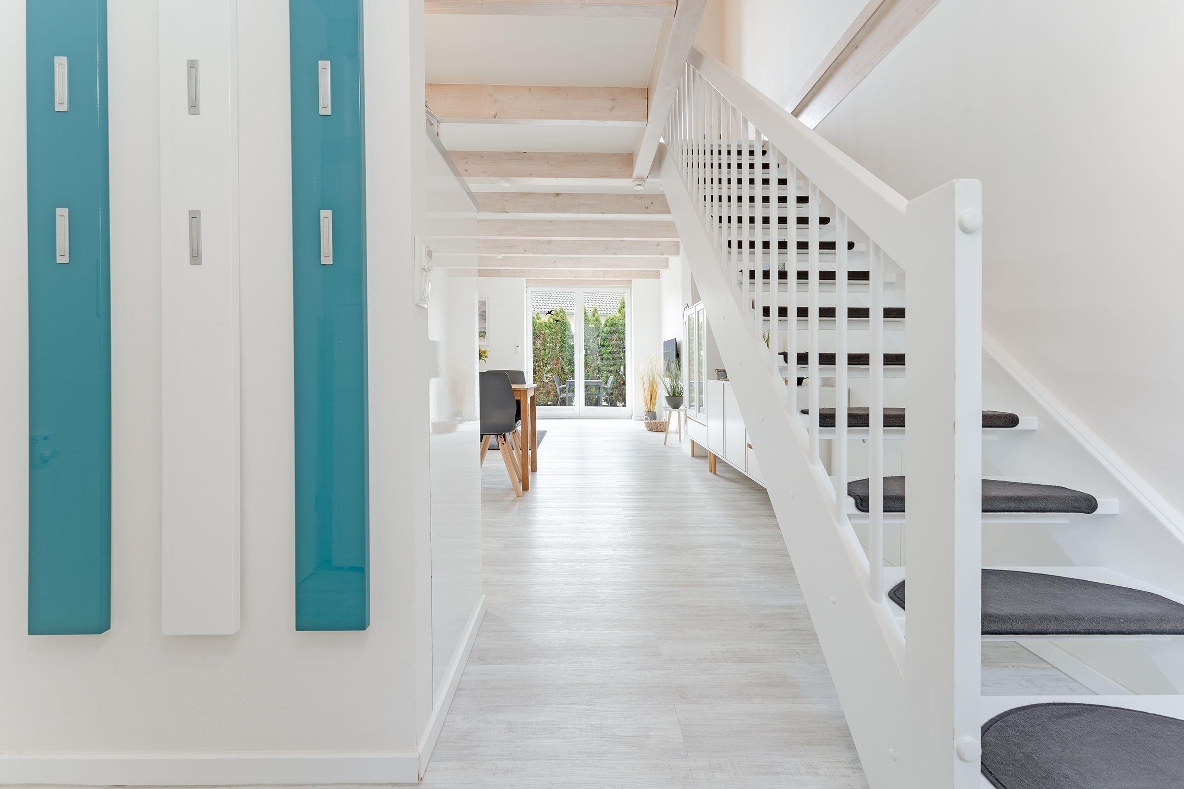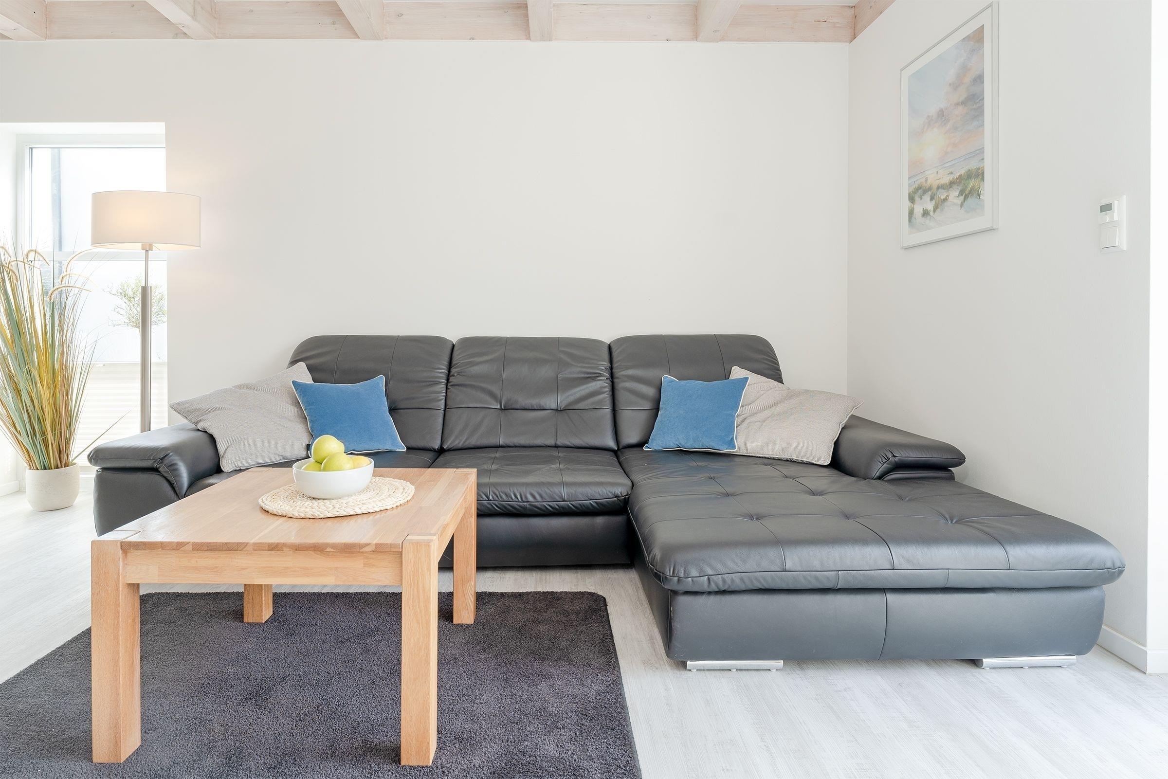 Wer sich im Urlaub gern an der frischen Luft aufhält, ist hier richtig: Das Haus Seeadler 4 liegt schön idyllisch, der Ostseestrand ist rund 300 Meter entfernt. Im hellen Wohnbereich sorgen offene Balken für eine wohlige Atmosphäre. Nehmen Sie Platz auf der großzügigen Sofalandschaft mit Blick aufs TV-Gerät – oder ins Grüne. Die beiden sonnigen Terrassen sind möbliert und im Garten darf gern gegrillt werden. Auch in der modernen Küche mit Induktionsherd und Spülmaschine können Sie Ihre Lieblingsspeisen zubereiten. Genießen Sie diese auf dem süßen Balkon oben. Erholsame Nächte versprechen die beiden Schlafzimmer, eins ist mit einem Boxspring-Doppelbett (2x 90x200 cm) und eins mit 2 Einzelbetten (je 90x200 cm) ausgestattet. Das moderne Badezimmer oben mit Tageslicht verspricht einen guten Start in den neuen Tag. Im Untergeschoss gibt es ein Gäste-WC mit einem Waschtrockner.