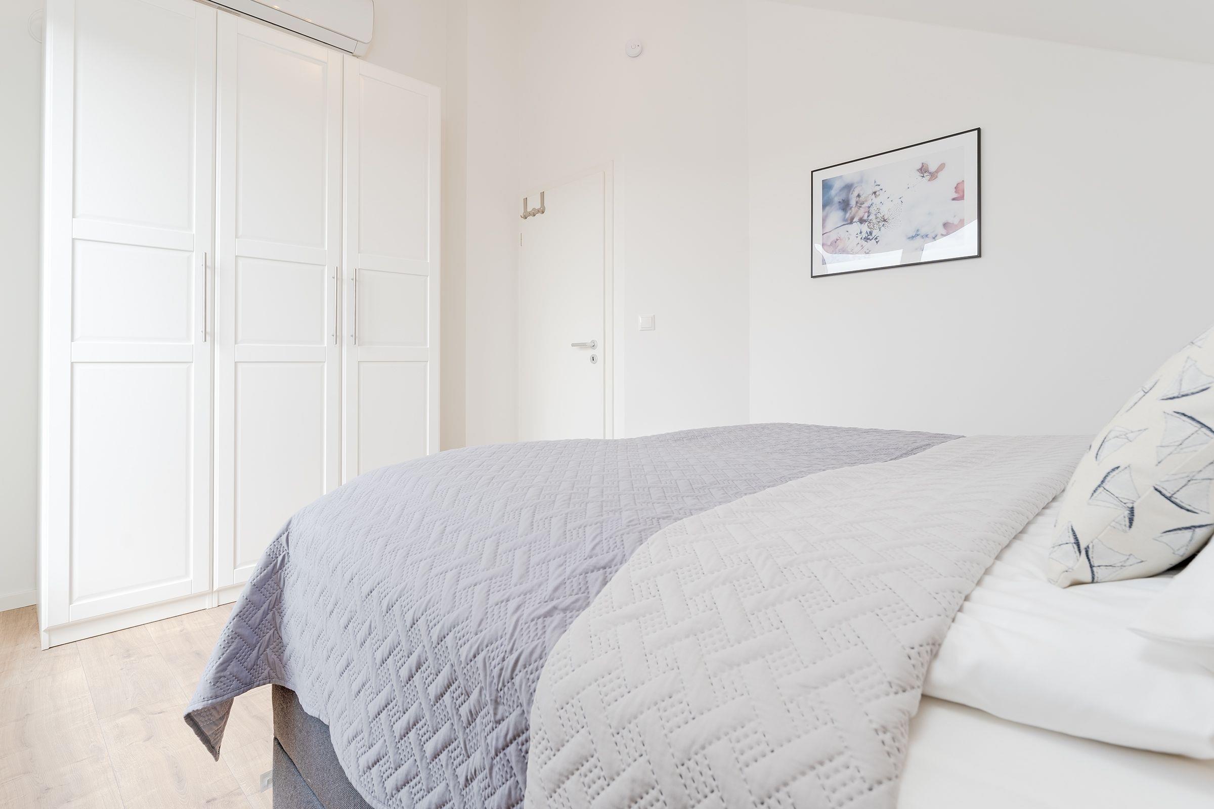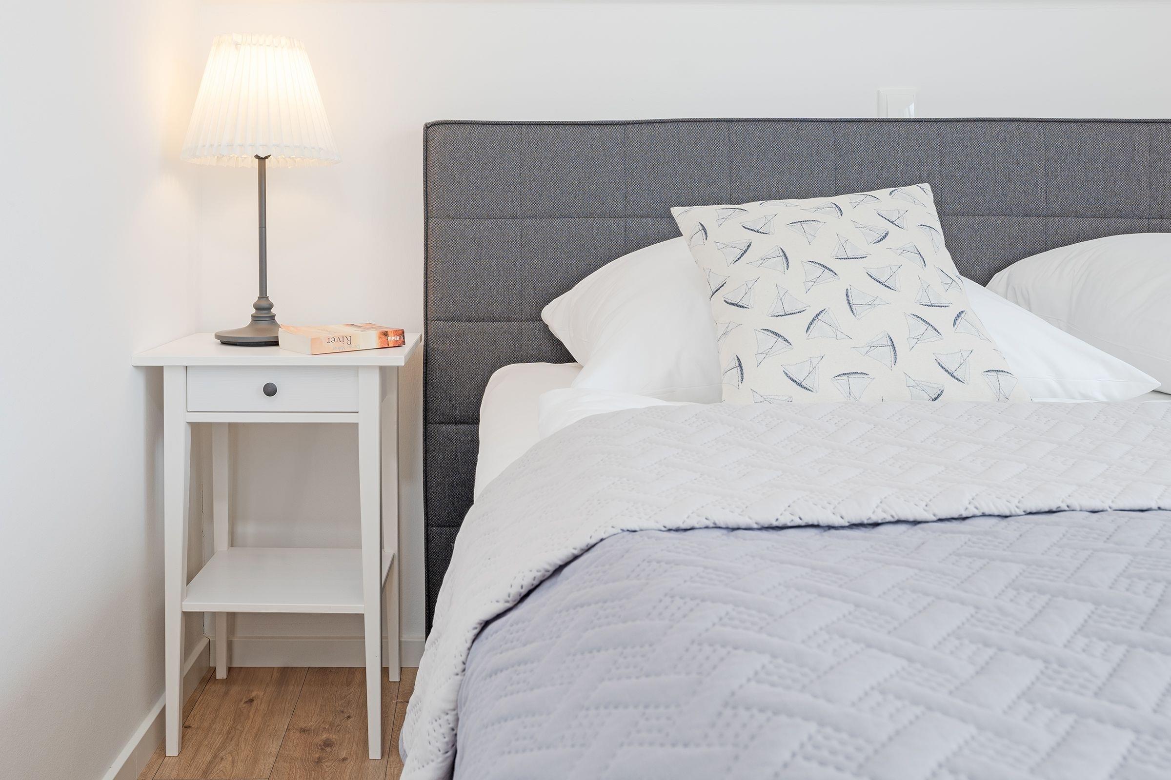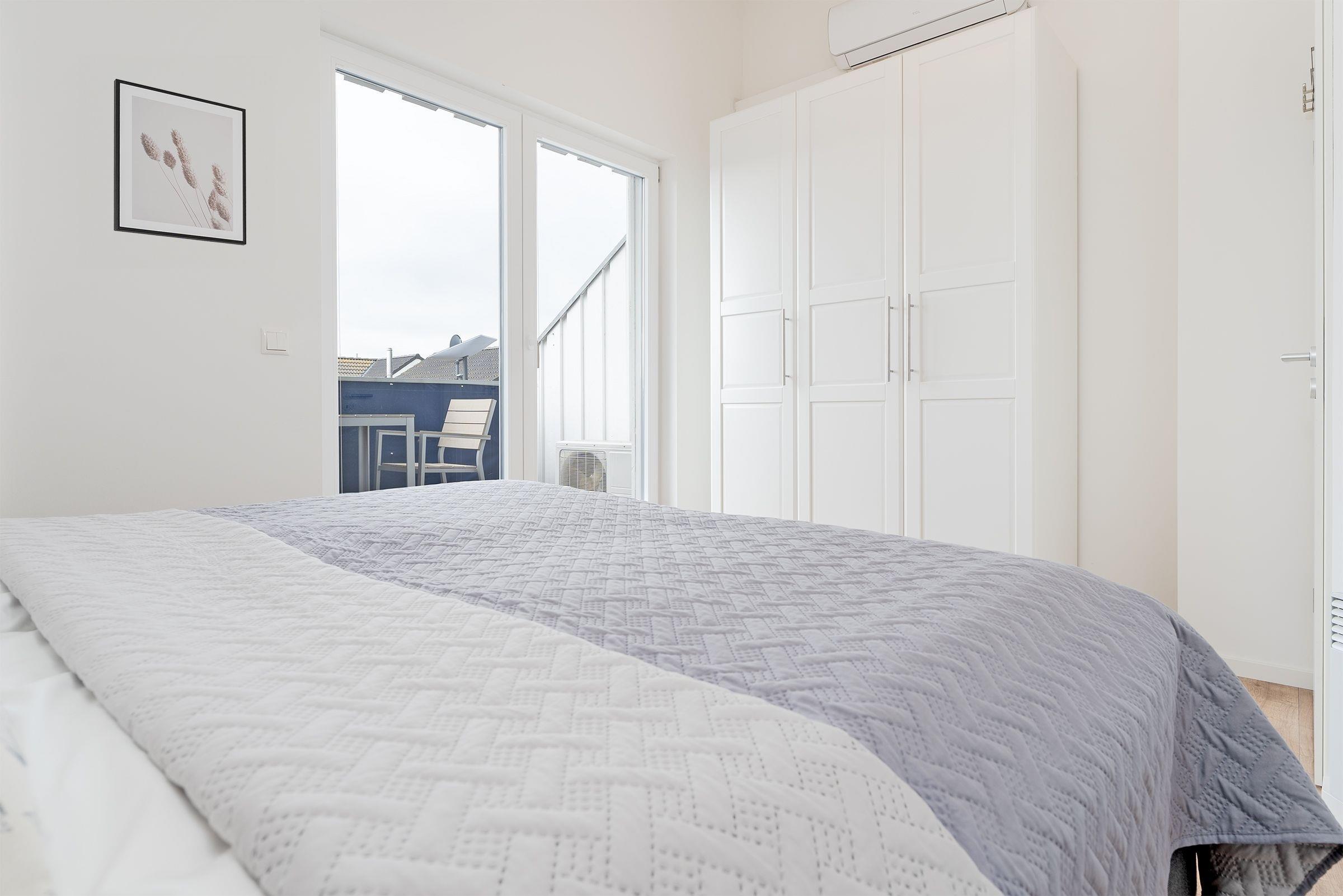 Schlafzimmer 1: 1 Boxspring-Doppelbett (2x 90x200 cm), Kleiderschrank, Verdunkelung: Plissee, Platz für Babybett vorhanden