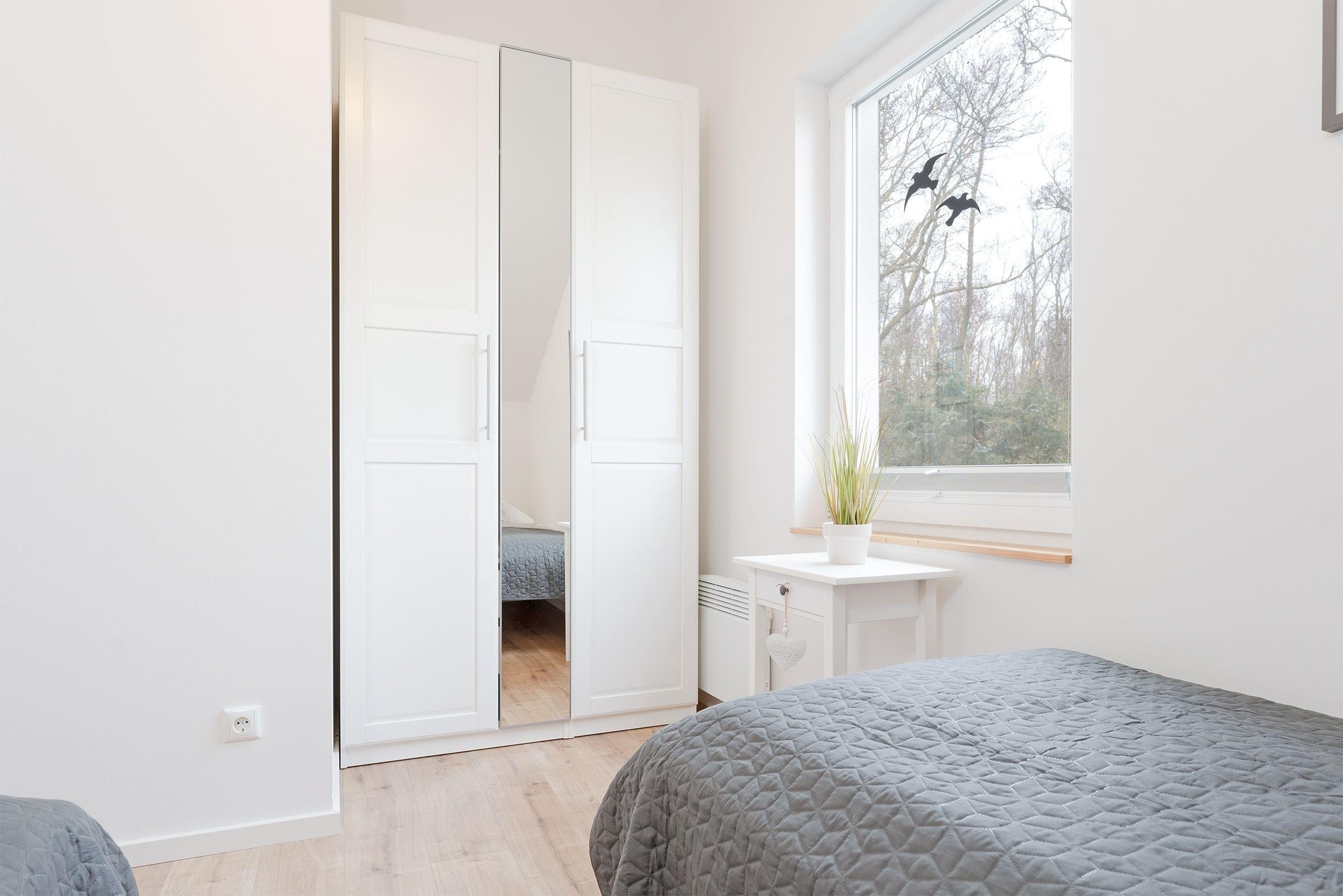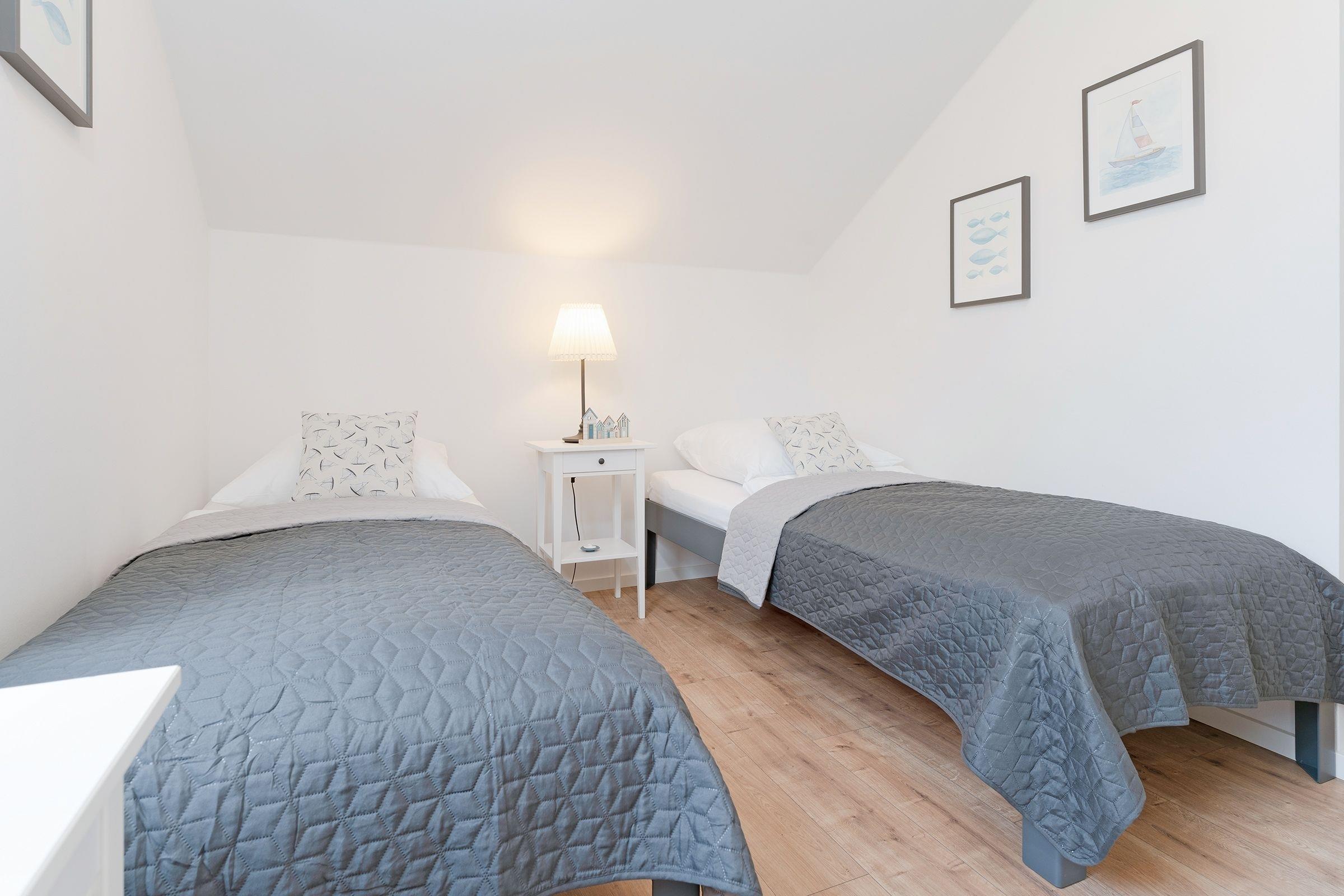 Schlafzimmer 2: 2 Einzelbetten (je 90x200 cm), Kleiderschrank, Verdunkelung: Plissee, kein Platz für ein Babybett vorhanden