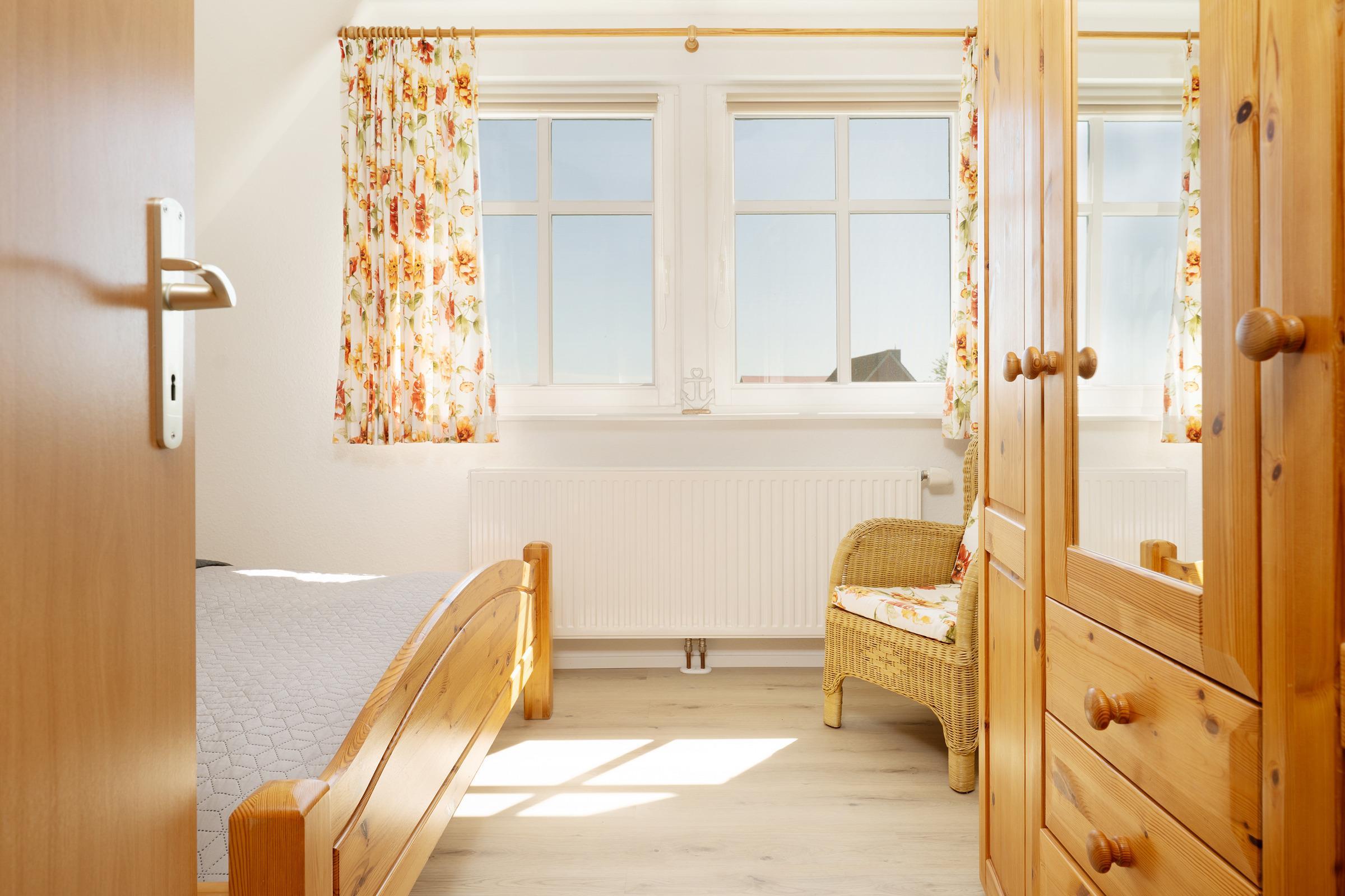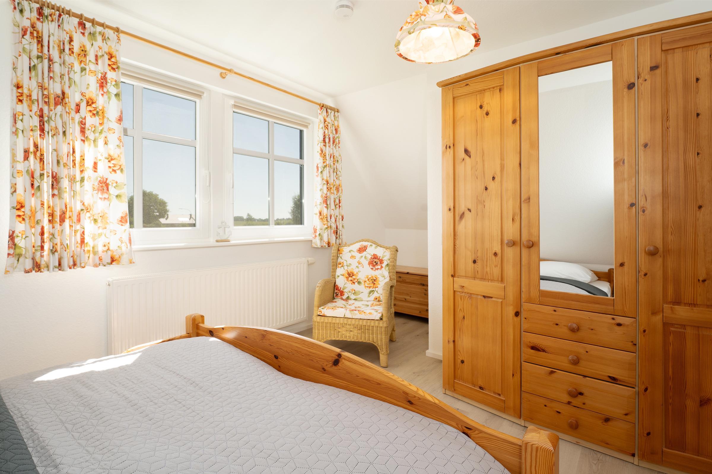 Schlafzimmer 2 (OG): 1 Doppelbett (2x 90x200 cm), Kleiderschrank, Verdunkelung: Rollo, Platz für ein Babybett vorhanden