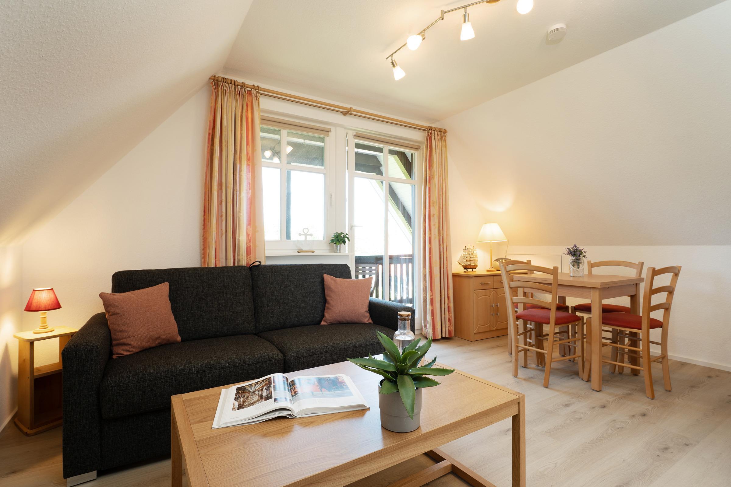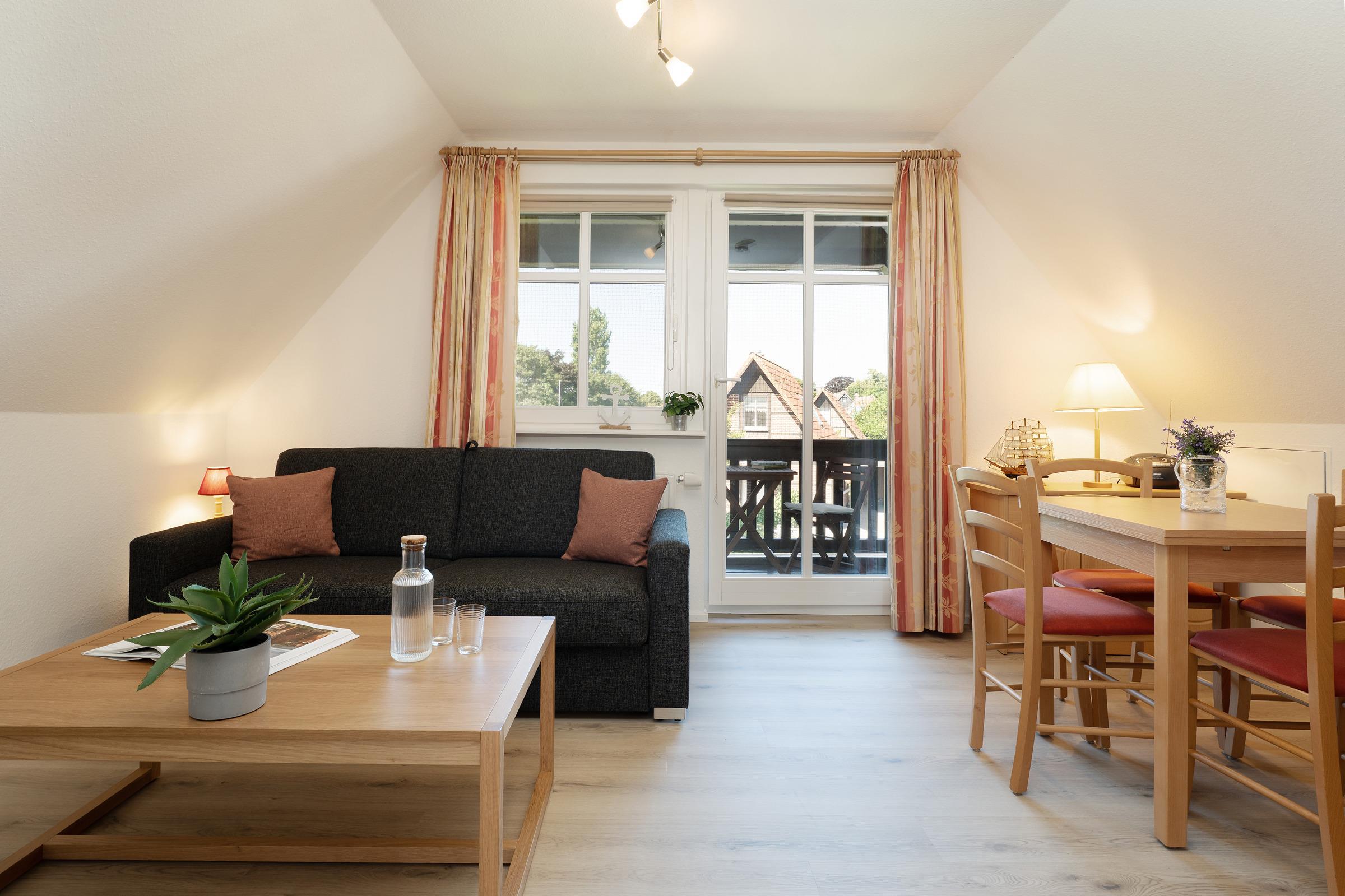 Die offene Küche ist voll ausgestattet mit Induktionsherd, Backofen, extra Gefrierschrank, Kaffeemaschine und Toaster. Der angrenzende Essbereich bietet ausreichend Platz für alle Gäste.