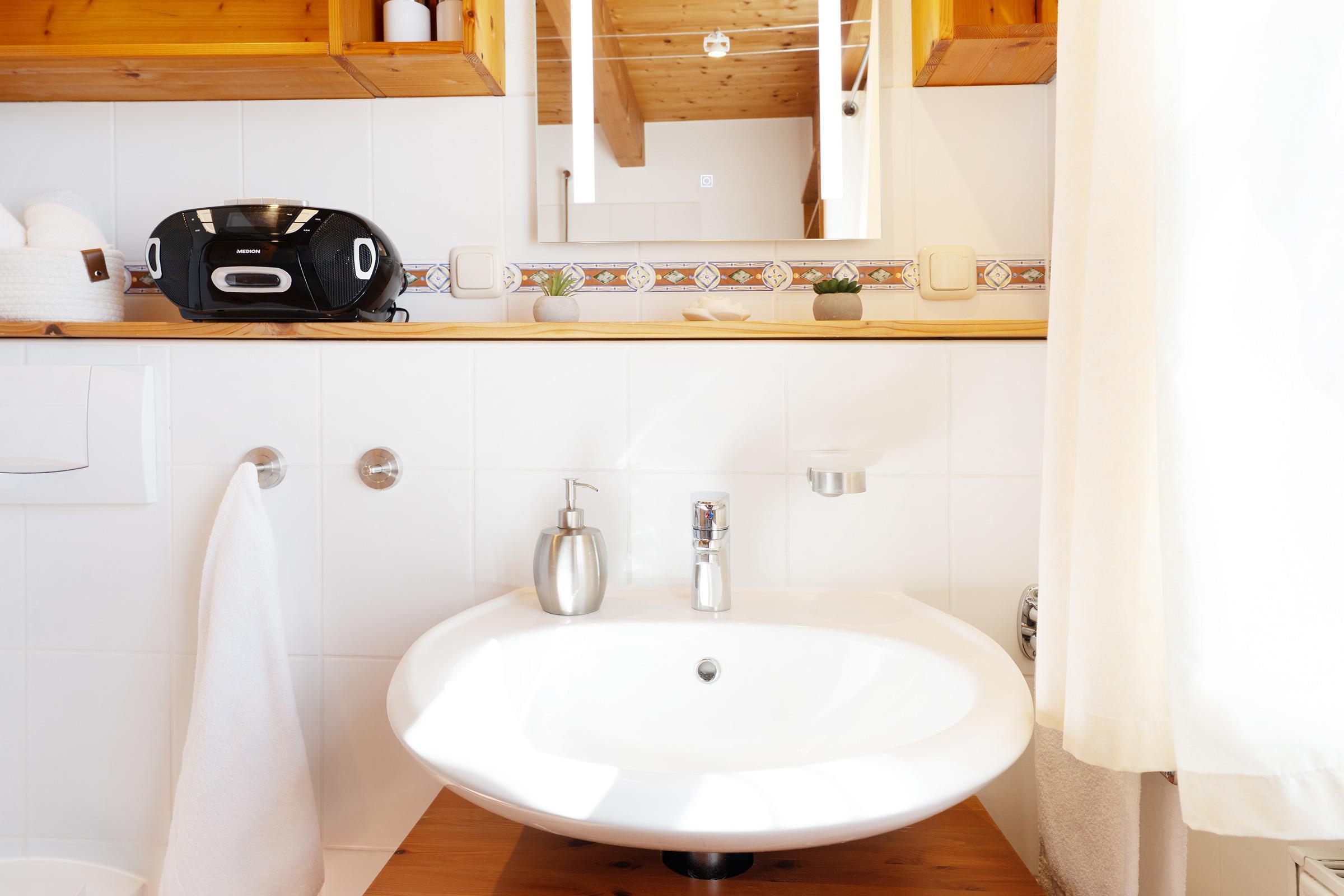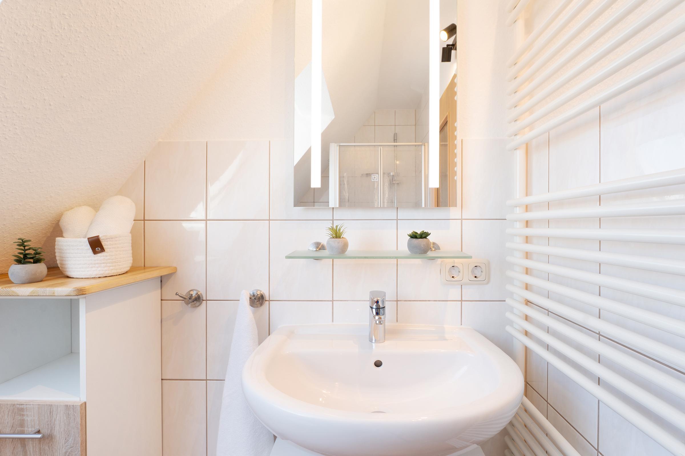 Die modernen Badezimmer sind eines mit Badewanne und eines mit Dusche ausgestattet. Ein beheizbarer Handtuchhalter und Haartrockner runden das Angebot ab.