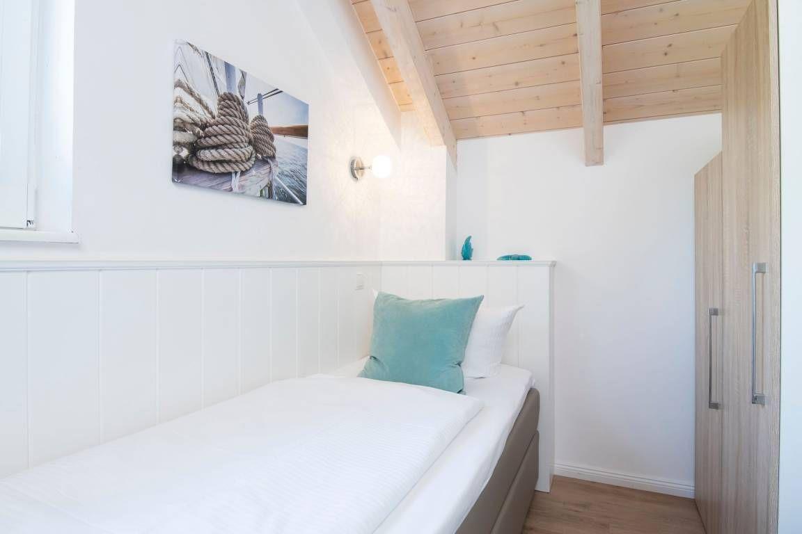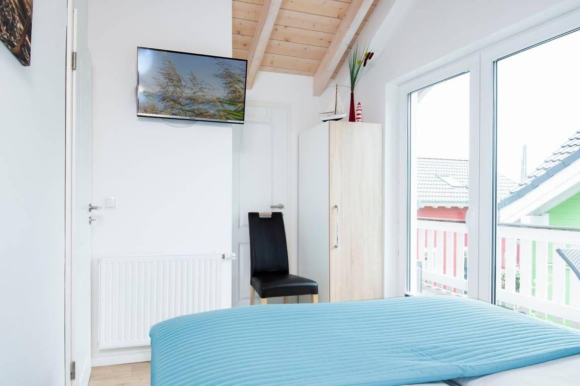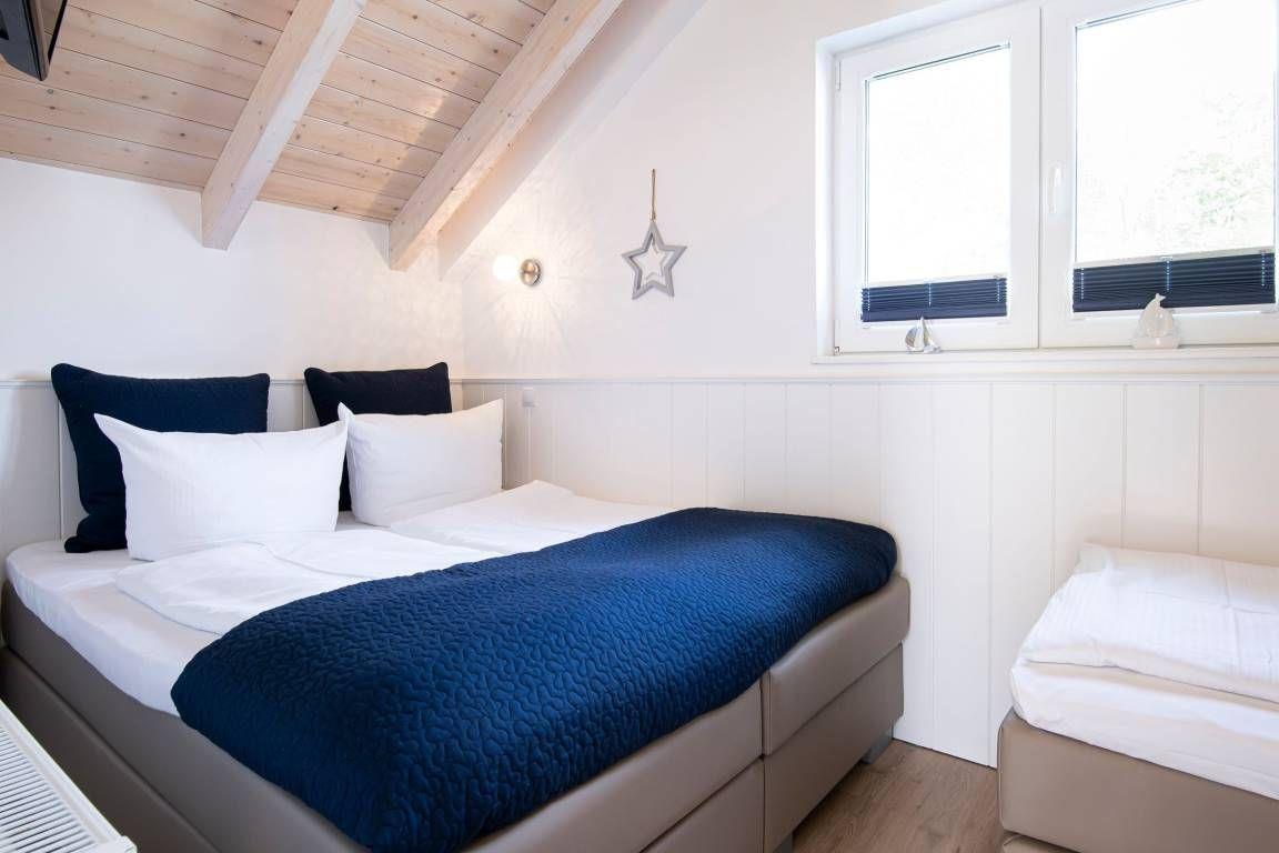 Freuen Sie sich auf zwei charmante Schlafzimmer mit hochwertigen Boxspringbetten (160x200), Verdunkelungsplissees und eigenen Smart-TVs. Vom Balkon aus genießen Sie die frische Ostseeluft gleich nach dem Aufstehen. Ein Schlafzimmer bietet zusätzlich ein Einzelbett (90x200). Treppengitter oben und unten sorgen für Sicherheit für Familien mit kleinen Kindern. Für Familien mit Kindern sorgen Treppengitter und ein durchdachtes Raumkonzept für zusätzliche Sicherheit und Entspannung.