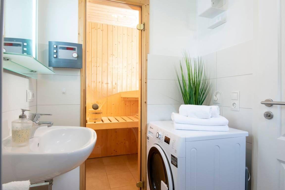 Ein absolutes Highlight: Ihre private Sauna im Haus. Nach einem Tag am Strand oder einer Fahrradtour entspannen Sie hier ganz für sich – ohne Zeitlimit, ohne andere Gäste. Das Tageslichtbad mit Dusche sowie das separate WC im Obergeschoss sorgen für zusätzlichen Komfort. Eine Waschmaschine mit integriertem Trockner lässt das Ferienhaus zu einem angenehmen Ort für längere Aufenthalte werden.