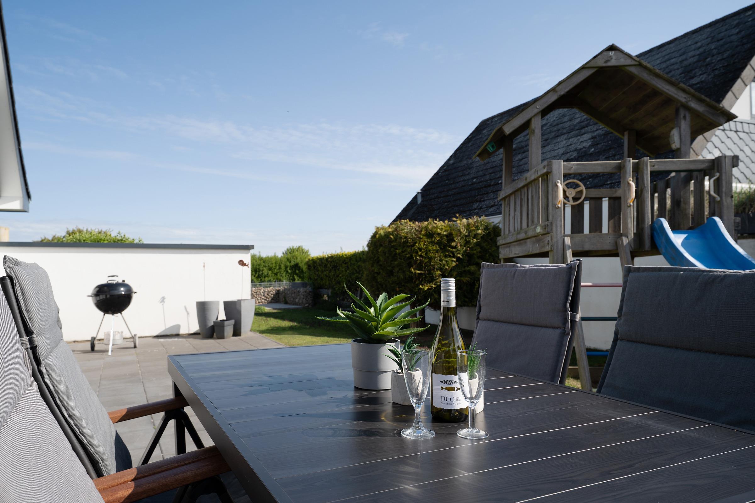 Modernes Ferienhaus Meerglück nahe dem Strand von Sütel mit Terrasse, Garten und WLAN für einen erholsamen Ostseeurlaub.