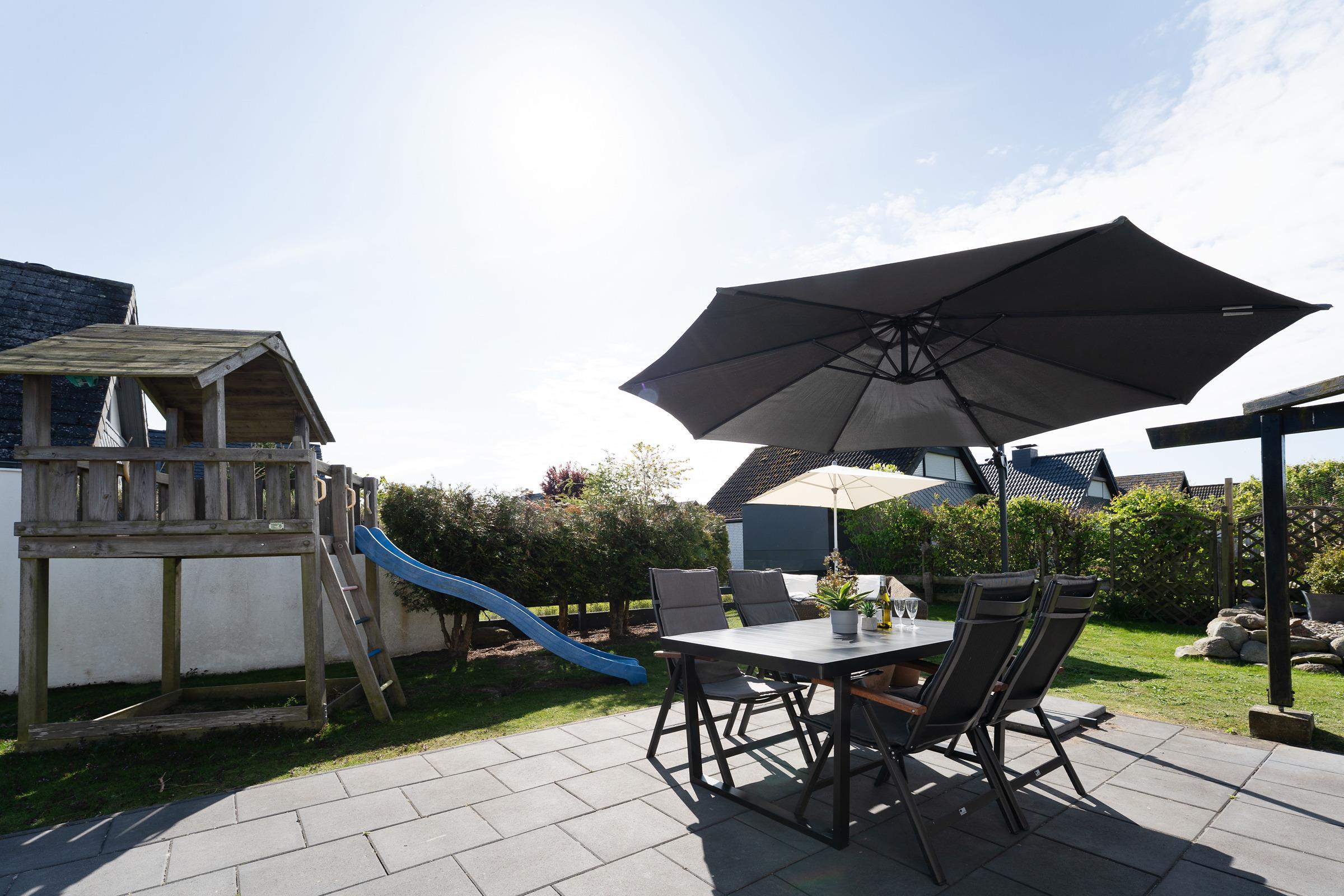 Strandnahes 3-Zimmer-Ferienhaus in Sütel-Strand mit 69 m² Wohnfläche, Terrasse und Garten für bis zu 6 Personen.