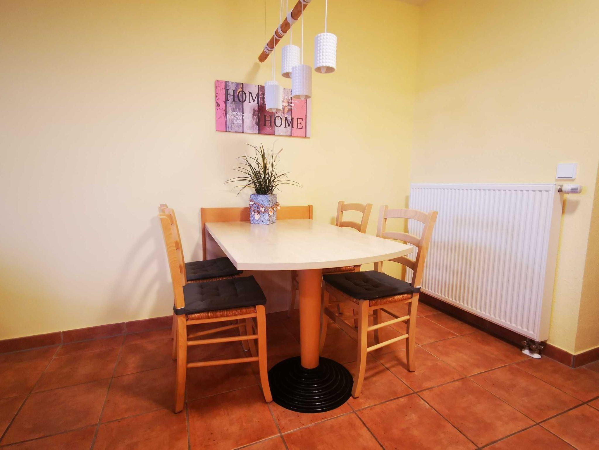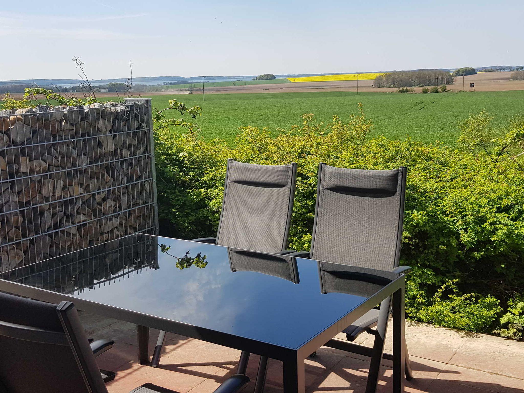 ? Die Terrasse ist mit einem Tisch und 4 Stühlen ausgestattet