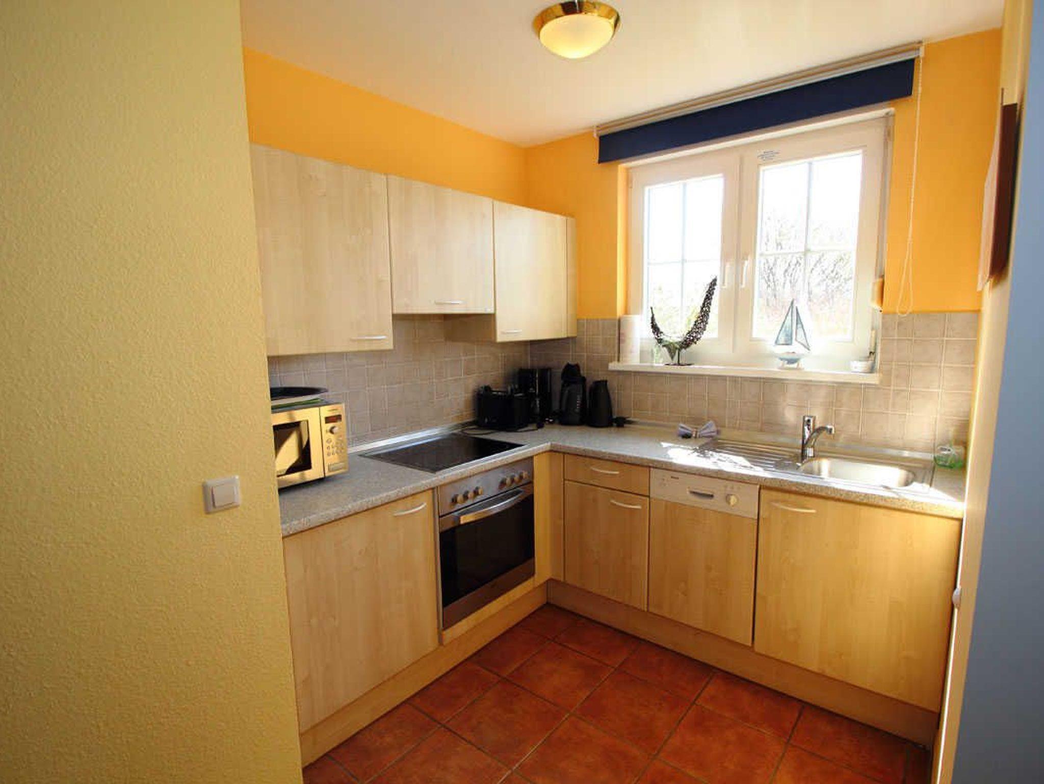? Die integrierte Küche im Wohnbereich verfügt über eine komplette Ausstattung inkl. Geschirrspüler, Cerankochherd, Backofen, Kühlschrank und Gefrierfach und Mikrowelle.