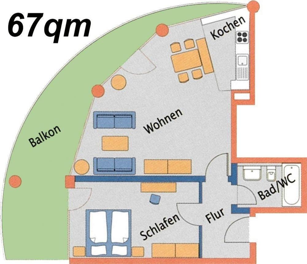 Die Ferienwohnung A1.5 im Haus Nordseebrandung in Cuxhaven bietet auf großzügigen 67 m² Platz für bis zu vier Personen. Im Mittelpunkt steht das offene Wohn- und Esszimmer mit einer gut ausgestatteten Küchenzeile, die eine Spülmaschine beinhaltet. Ein gemütliches ausklappbares Schlafsofa sorgt für zusätzlichen Komfort, während im separaten Schlafzimmer erholsame Nächte garantiert sind. Das Badezimmer ist mit einer bodengleichen Dusche ausgestattet, die täglichen Komfort bietet. Ein besonderer Vorteil ist der große Rundbalkon, der zum Entspannen einlädt. Gemeinschaftliche Einrichtungen wie ein Fahrradkeller sowie Münz-Waschmaschinen und Trockner im Keller stehen zur Verfügung. Der feinsandige Strand liegt lediglich 200 Meter entfernt und ist ideal für zahlreiche Aktivitäten. Die Wohnung befindet sich in der 1. Etage und ist bequem mit einem Fahrstuhl zu erreichen.