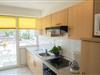 Die geschlossene, voll ausgestattete Küche beinhaltet ein Cerankochfeld, einen Backofen, eine Spülmaschine, eine Mikrowelle und einen Kühlschrank mit Gefrierfach. Zudem stehen sämtliche Küchenutensilien zur Verfügung. Ein Esstisch und zwei Balkone, die einen Blick auf das Meer und den Wald bieten, laden zum Verweilen ein.