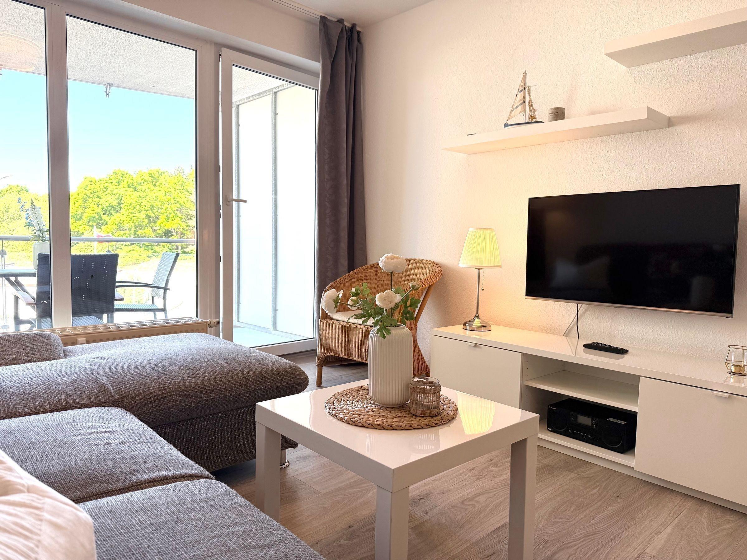 Helle Ferienwohnung in Sahlenburg mit Meerblick, zwei Balkonen und vielfältigen Freizeitmöglichkeiten für einen perfekten Familienurlaub.