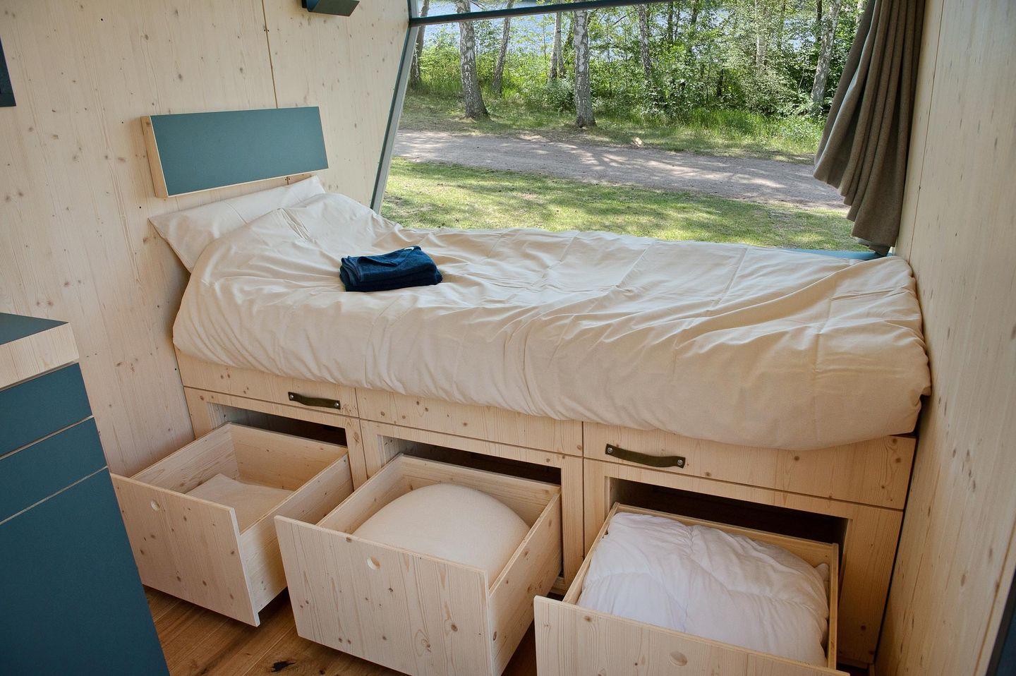 Die neuen Green Tiny Sleep Spaces sind ideal geeignet für Fahrradfahrer, Wanderer und andere Naturliebhaber, die nach einer nachhaltigen und stilvollen Übernachtungsmöglichkeit suchen. Auf fünf Quadratmetern findest du alles, was du für einen Kurzaufenthalt benötigst: ein komfortables Bett für zwei Personen, eine Kochnische mit Waschbecken und ausreichend Staumöglichkeiten. Duschen und Toiletten findest du in den Waschräumen des Campingplatzes. Die kleinen Geschwister der Green Tiny Houses vom Typ Pioneer werden ebenfalls in Schleswig-Holstein gebaut und bestehen ausschließlich aus wohngesunden Materialien. Außerdem bieten wir dir eine klimaneutrale Übernachtung dank Kompensation aller anfallenden CO2-Emissionen.