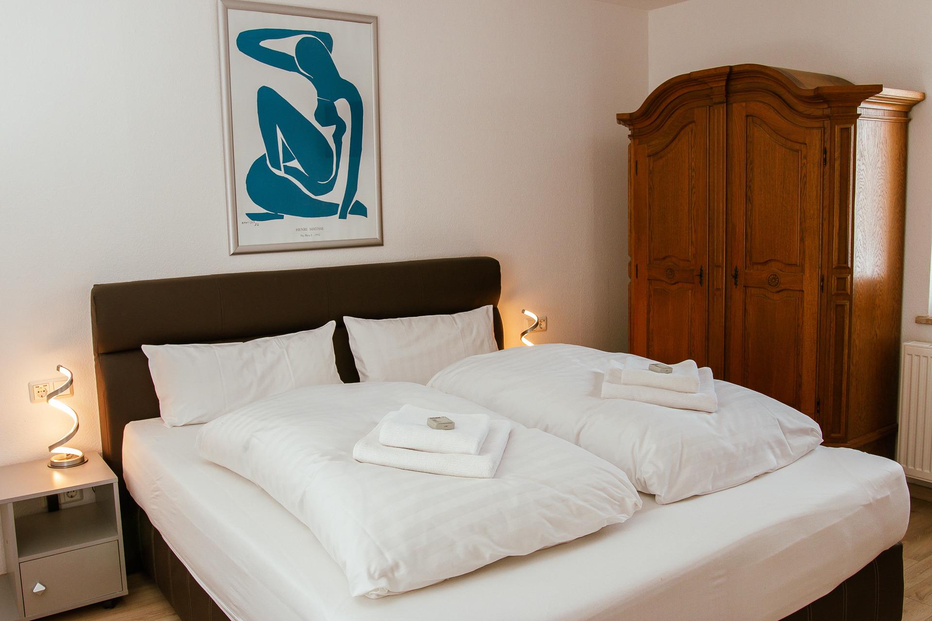 Ihren wohlverdienten Schlaf erhalten Sie im separaten Schlafzimmer mit großem komfortablen Boxspringdoppelbett. Dort finden Sie auch einen Kleiderschrank, in dem Sie Ihre Kleidung verstauen können. Zusätzlich steht in diesem Zimmer ein weiterer TV bereit.