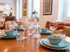 Für die gemeinsamen Mahlzeiten ist ein kleiner Esstisch direkt an der Küche vorhanden. Zusätzlich finden Sie im Wohnbereich einen ausziehbaren Esstisch, an dem alle Gäste zusammen Platz finden.