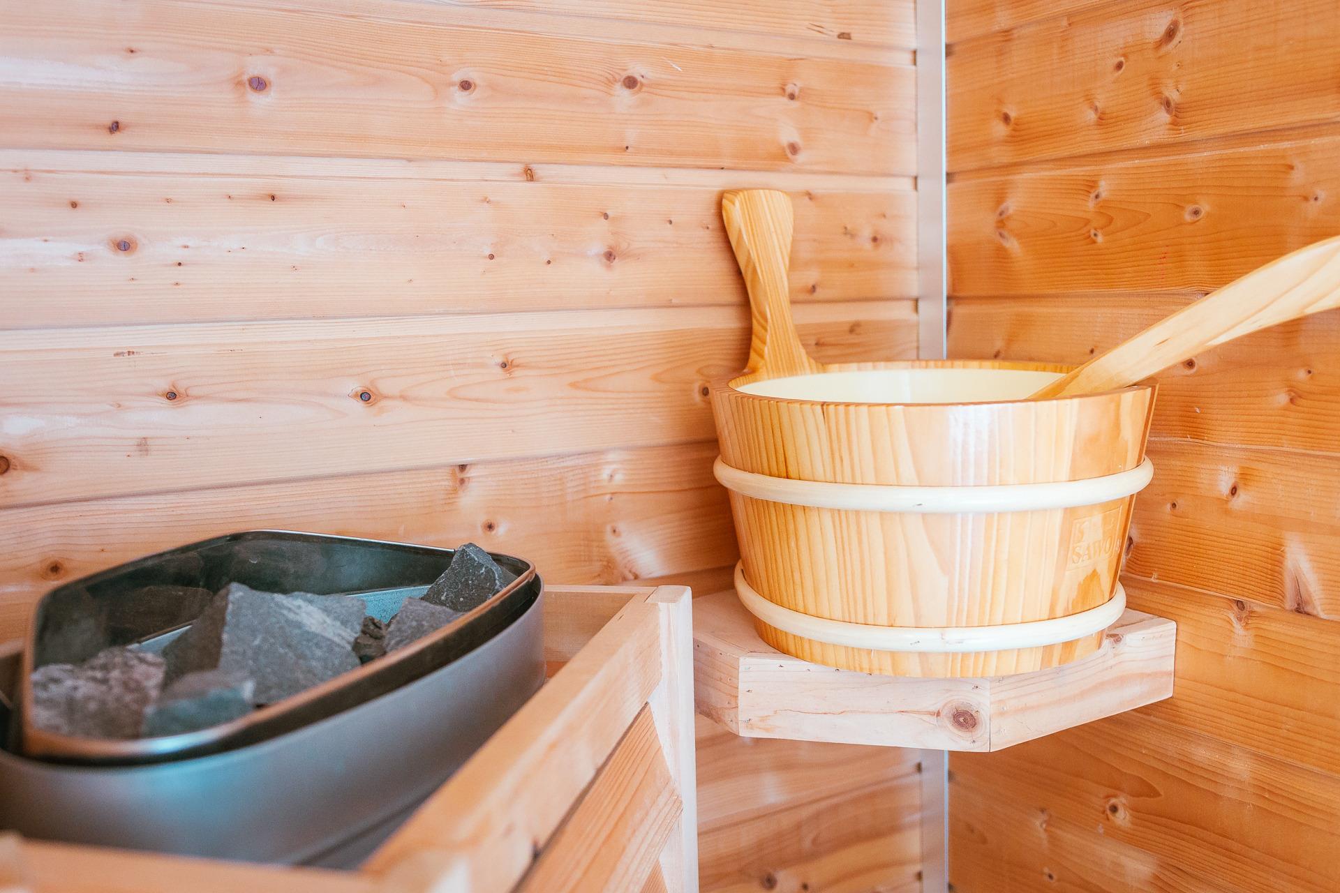 Zu den Highlights der Ferienunterkunft zählen die kleine Sauna im Badezimmer sowie der Ethanol-Kamin im Wohnzimmer.