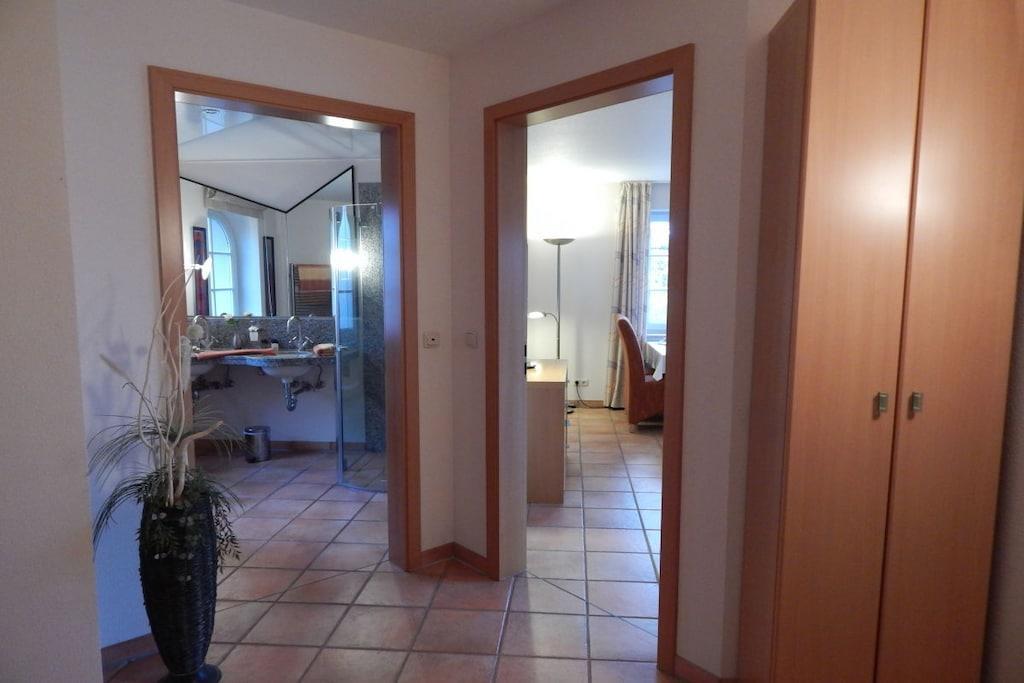 Die luxuriöse Ausstattung der Ferienwohnung lässt keine Wünsche offen. Exklusive Möbel, Accessoires und allerlei Annehmlichkeiten sind stilvoll aufeinander abgestimmt. Herzlich willkommen! Im hochwertigen Badezimmer in Granitausstattung gibt es eine ebenerdige Dusche mit Duschklappsitz, Haartrockner sowie einen Handtuchwärmer mit Handtüchern und Bademäntel. Die geräumige Küche ist ausgestattet mit einer Mikrowelle, Geschirrspüler, Gefrierkomi, Cerankochfeld, Backofen und vielem mehr. Im gemütlichen Wohnzimmer befindem sich selbstverständlich , TV und DVD-Player mit Stereoanlage. Das Schlafzimmer ist neu ausgestattet.Boxspringbett Härtegrad 3 ,(180x200) lädt zum Träumen ein. Die eigene Terrasse lädt ebenfalls zum Verweilen ein.
