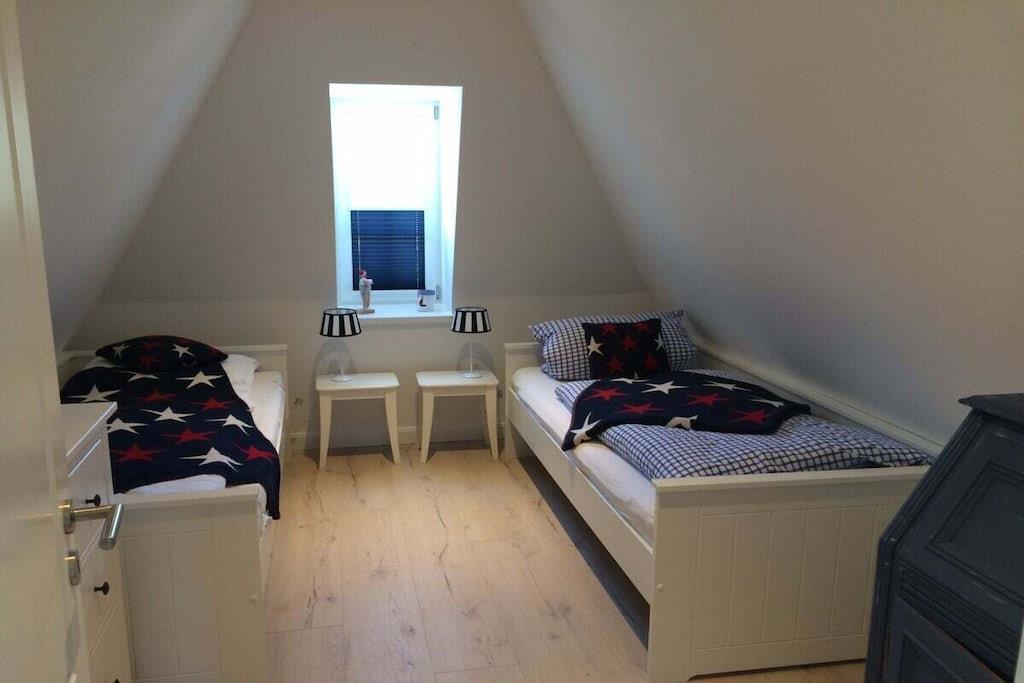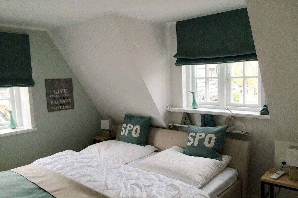 Unser gemütliches Strandnest mit 4 Schlafzimmern, zwei Bädern, Sauna und Kamin. 2 Schlafzimmer mit Doppelbetten, 2 Bäder, 2 Einzelbetten und 2 total süße Alkoven (90x200 cm ). Topmoderne Markenküche Daneben der lichtdurchflutete Wohn-Essbereich mit Kamin. Edle vintage Bodenbeläge, Ledersofa... Dazu noch Teakholz Terrassenmöbeln, Strandkorb. Hinzukommt Lage! Lage, Lage einfach ein Traum zu Fuß zum Strand Glasfaseranschluss Weitere Objekte: -Koje für 2 Personen https://www.traum-ferienwohnungen.de/587025.htm