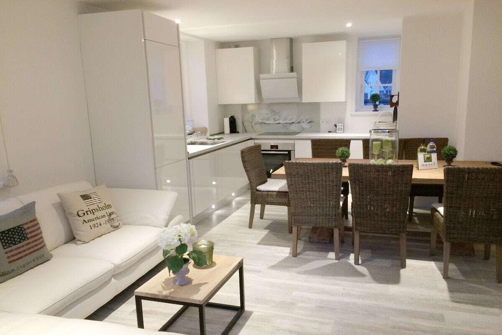 Gemütliches Ferienhaus in Sankt Peter Ording mit Sauna, Kamin und topmoderner Küche, nur wenige Gehminuten vom Strand entfernt.