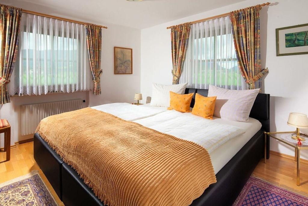 In der 1. Etage: (Küche(Mikrowelle), Wohn/Esszimmer(, TV, TV, Esstisch)) , , , Schlafzimmer(, , Doppelbett), Badezimmer(, Toilette, Badewanne, Dusche, Waschbecken, Waschbecken), Internet, Balkon(Balkon, Gartenmöbel, Markise), Balkon(Balkon, Gartenmöbel, Markise), Heizung, Ladestation für Elektroautos, Telefon, parken (kostenpflichtig)