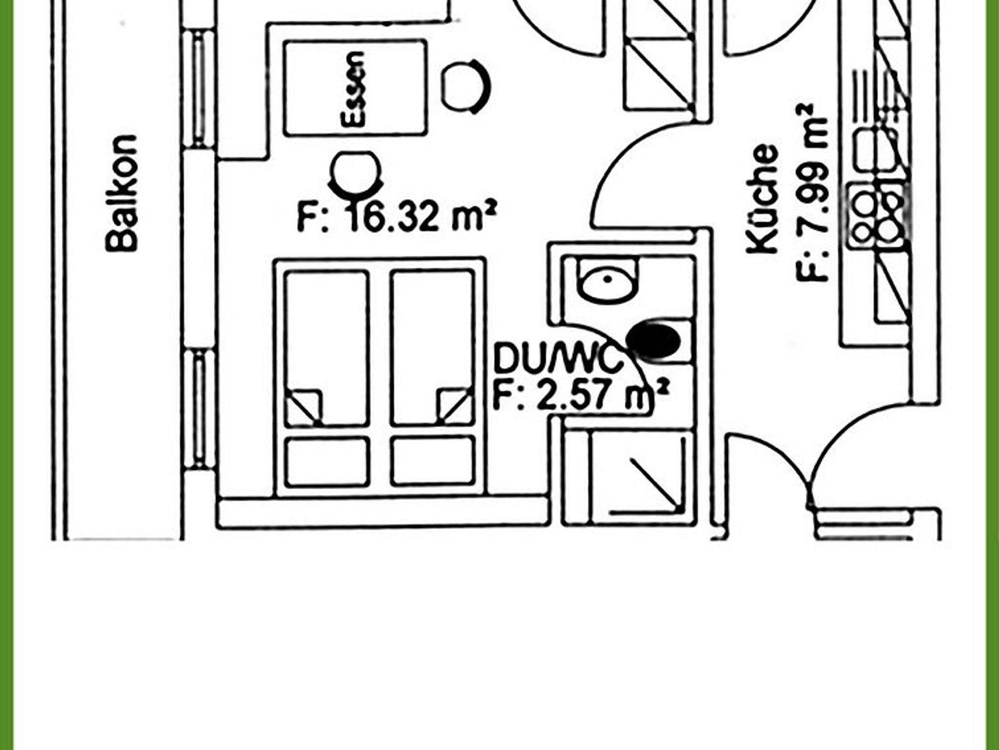 Die Ferienwohnung verfügt über eine Grundfläche von ca. 27 qm. Die Ausstattung reicht von einer Eckbank, Sat-TV, einer modernen und großzüg eingerichteten Küche mit Mikrowelle und Tiefkühlfach bis hin zum Bad mit Dusche und WC. Für einen ruhigen Schlaf sorgt das Doppelbett im Zentrum der Ferienwohnung. Der möblierte Balkon mit Aussicht auf die Berge rundet das Angebot ab.