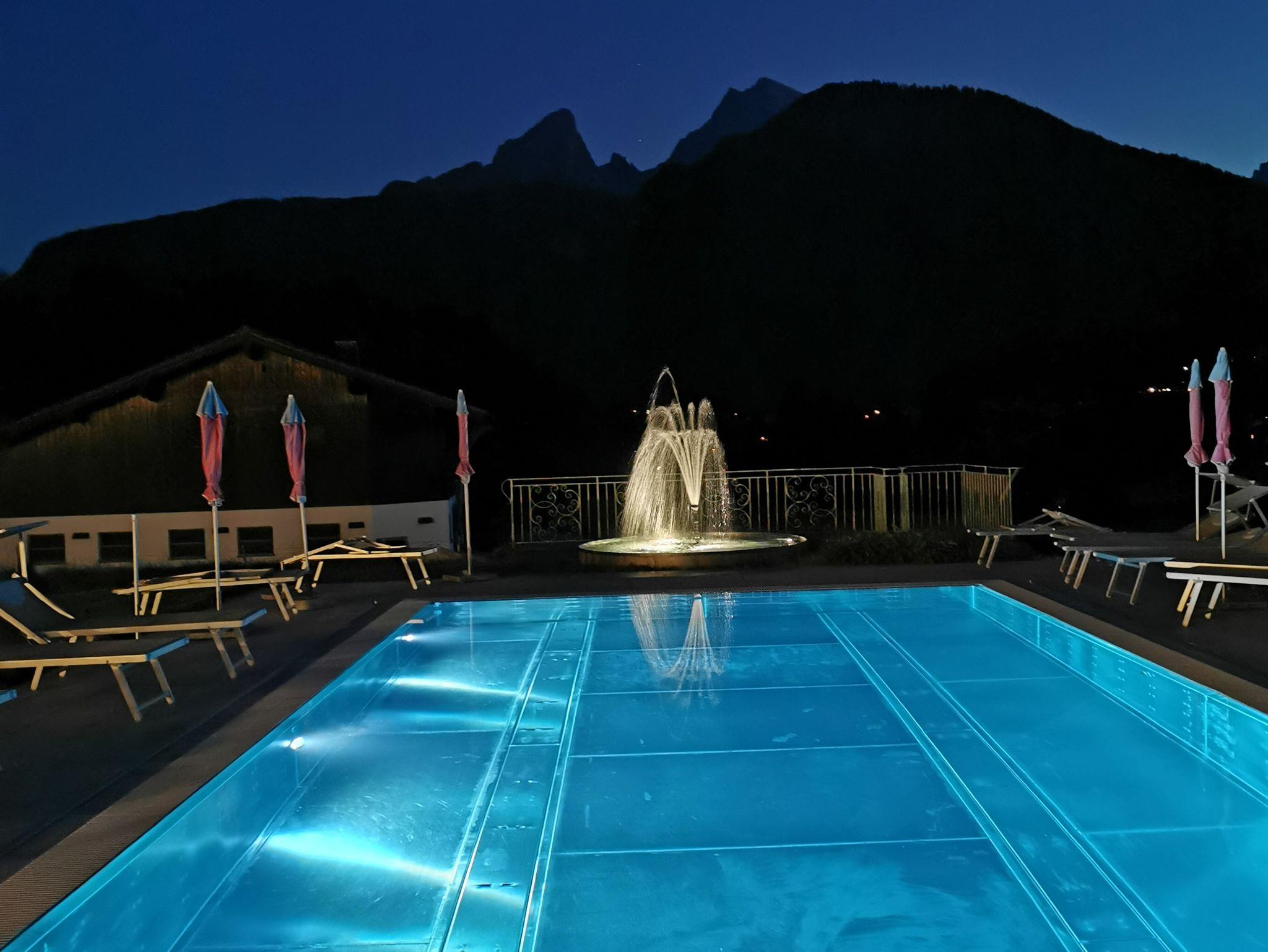 Mit Blick auf die gesamte Gebirgskette rundherum finden Sie unser Haus in sonniger, ruhiger jedoch zentraler Lage. Die Zimmer sind alle mit Tisch und Stühle, Dusche/WC, Balkon, Zentralheizung und TV ausgestattet. Für Ruhe und Entspannung sorgen eine große Liegewiese und eine gemütliche Terrasse. Für geselliges Zusammensitzen haben wir einen großen Aufenthaltsraum (Frühstücksraum). Wir bieten ein reichhaltiges Frühstücksbuffet was im Preis mit enthalten ist. Eigene Almen am Jenner. Nähere Informationen über unser Haus und unsere Almen entnehmen Sie bitte unserer Internetseite. Außenschwimmbad beheizt vorhanden von 01.05. - ca. Mitte Oktober je nach Wetterlage.