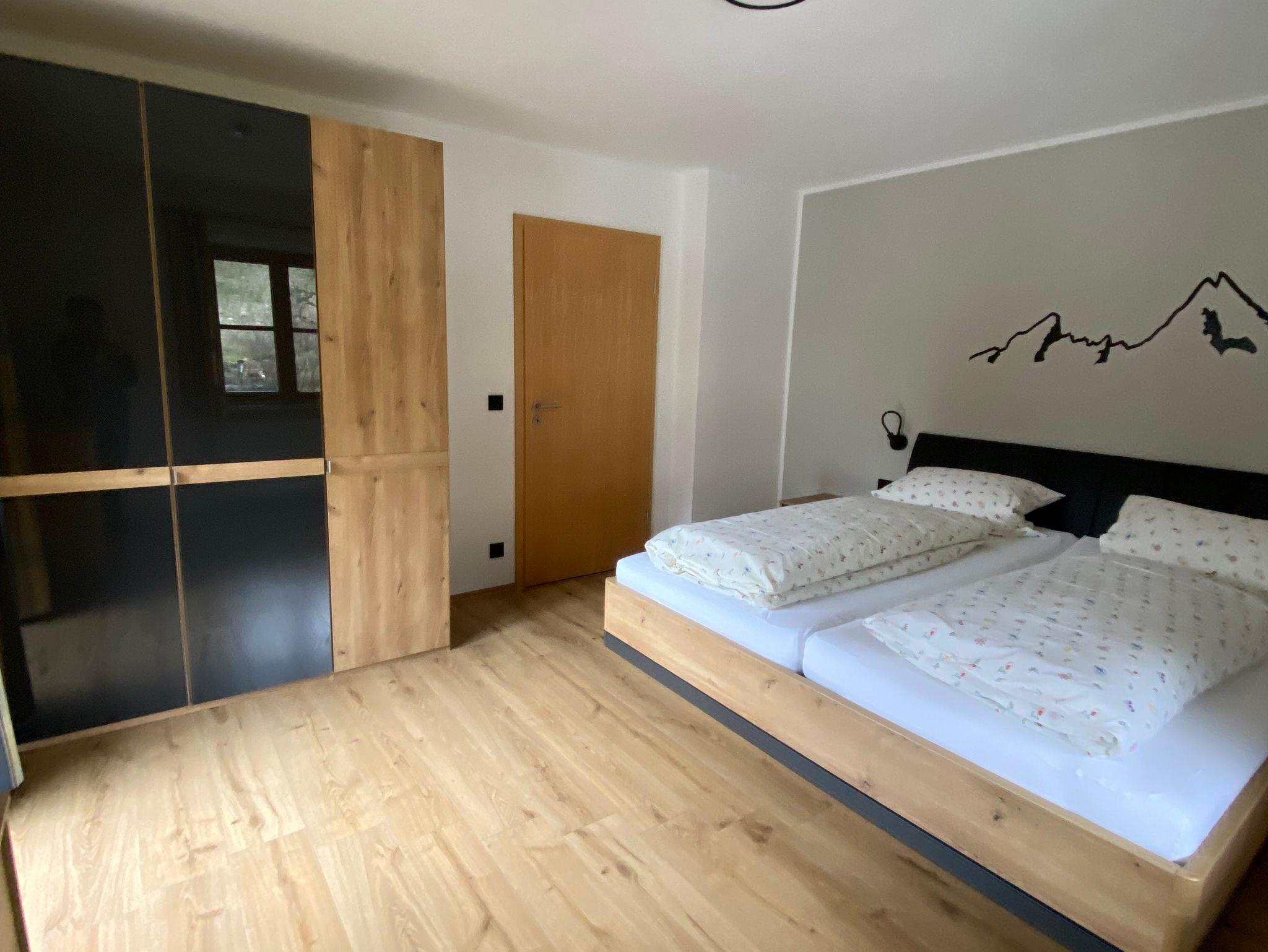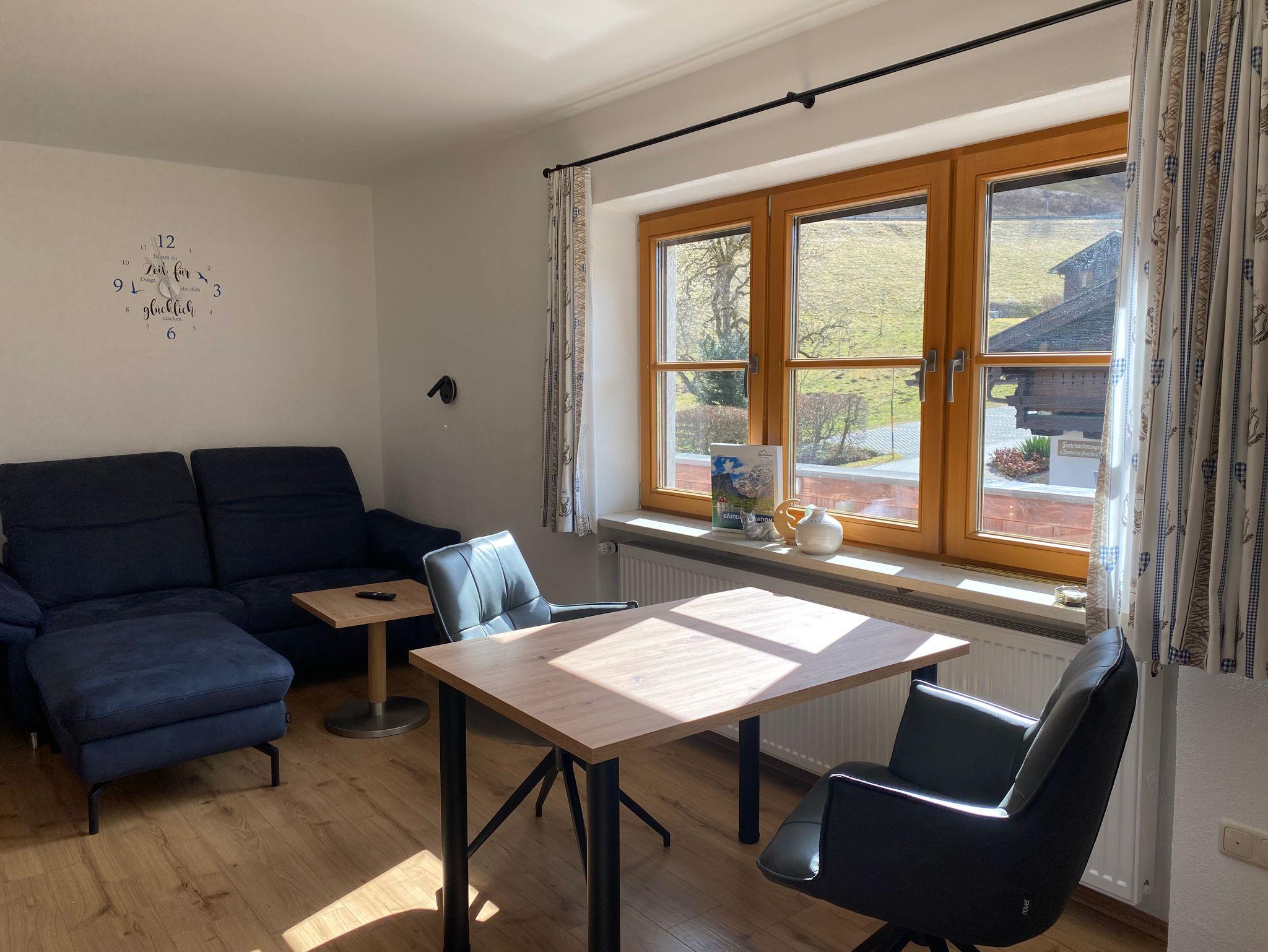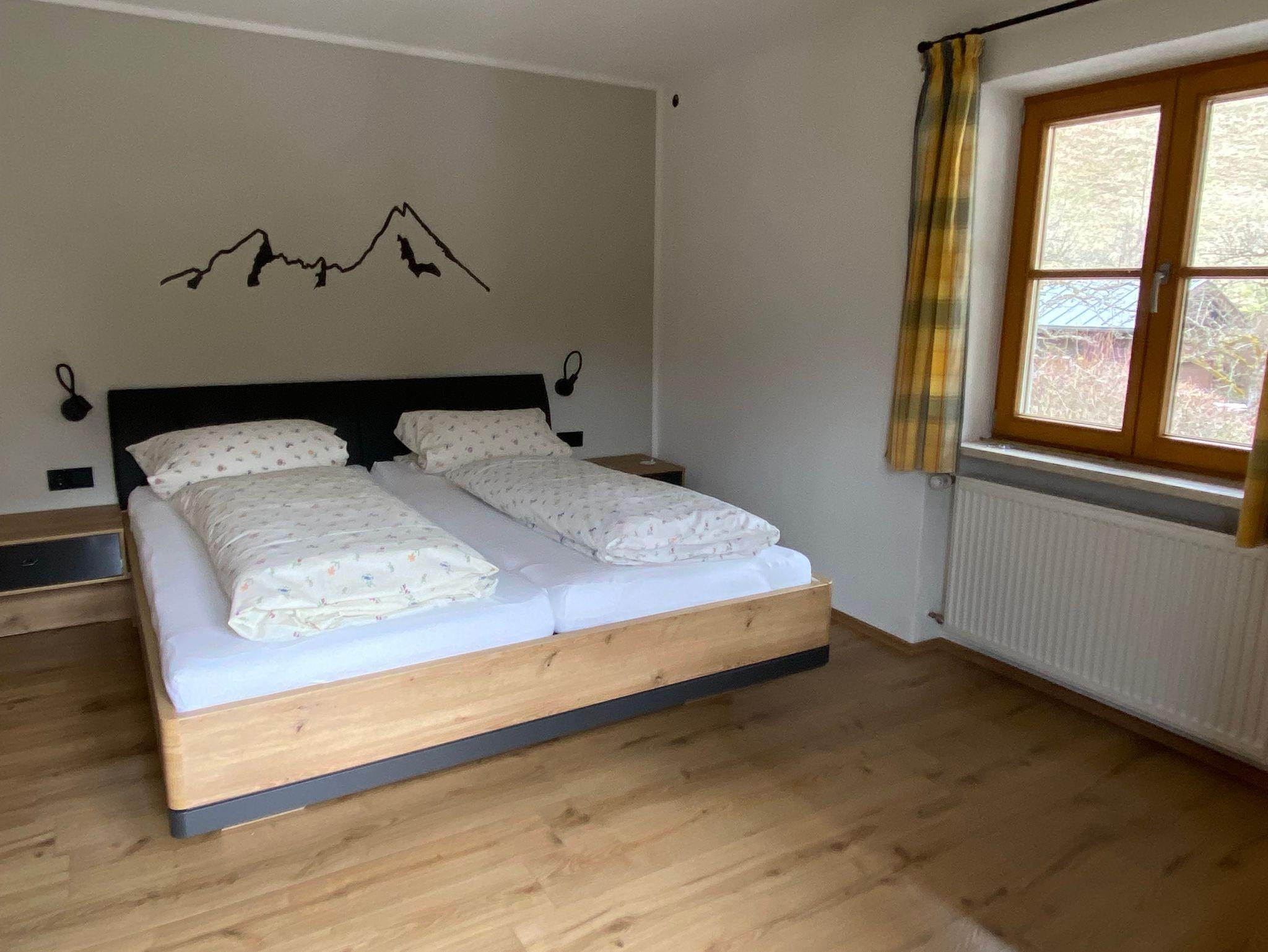 Die Nichtraucher-Ferienwohnung bietet eine Wohnfläche von ca. 43 qm und befindet sich im oberen Stock des Gästehauses. Sie ist ausgestattet mit einem separaten Schlafzimmer, einer gemütlich eingerichteten Wohnküche mit Sitzecke, Essecke, voll ausgestatteter Küchenzeile und einem Badezimmer mit Dusche und WC. Von Ihrem Südwest Balkon genießen Sie einen einzigartigen Blick auf den Watzmann.
