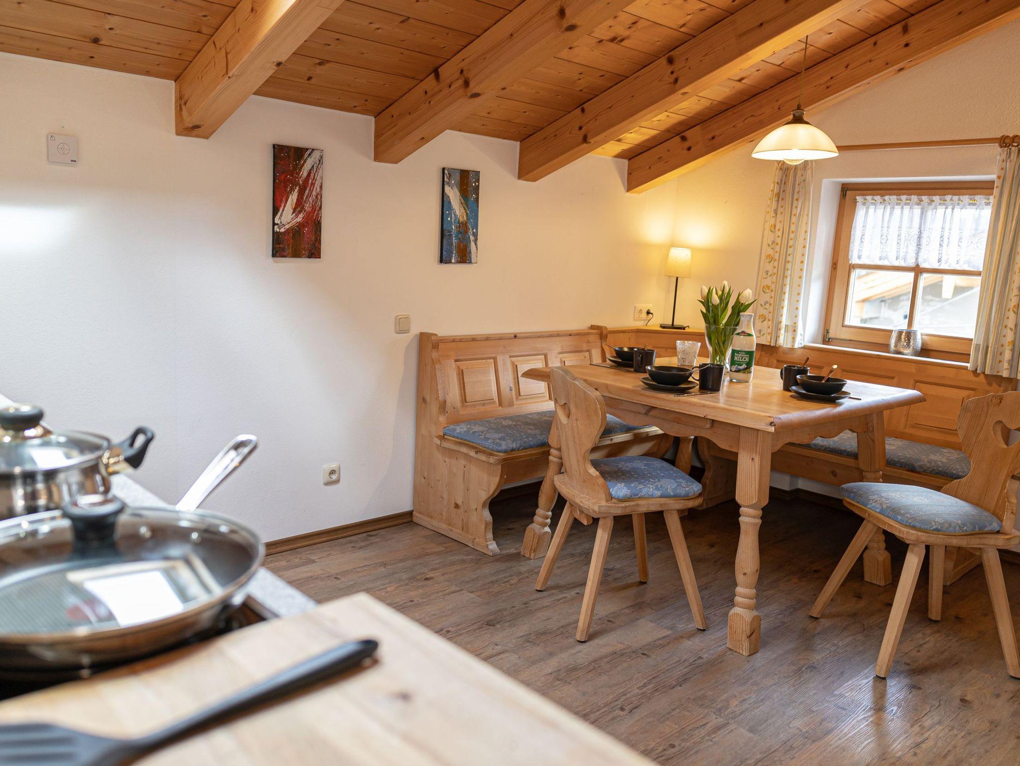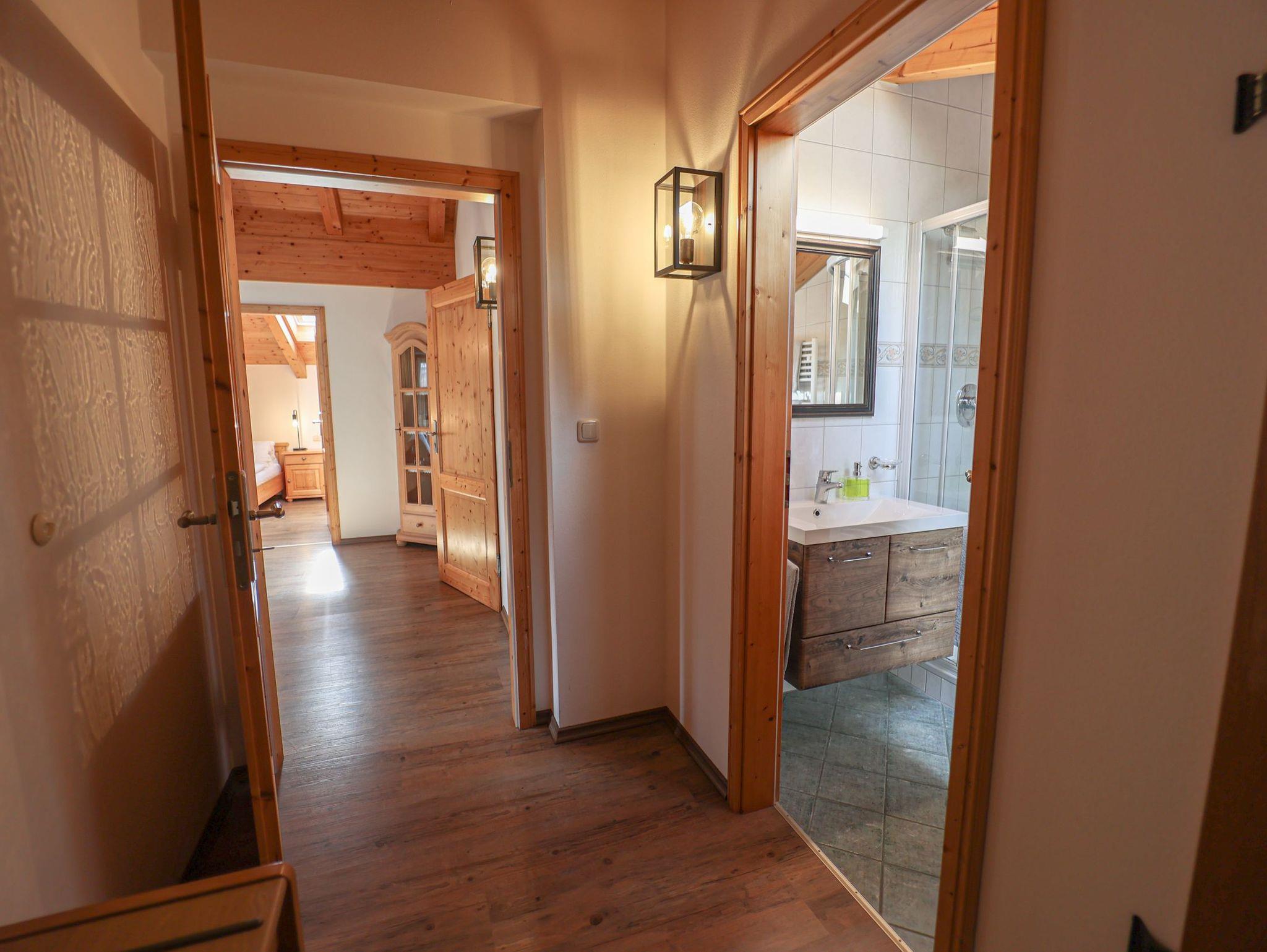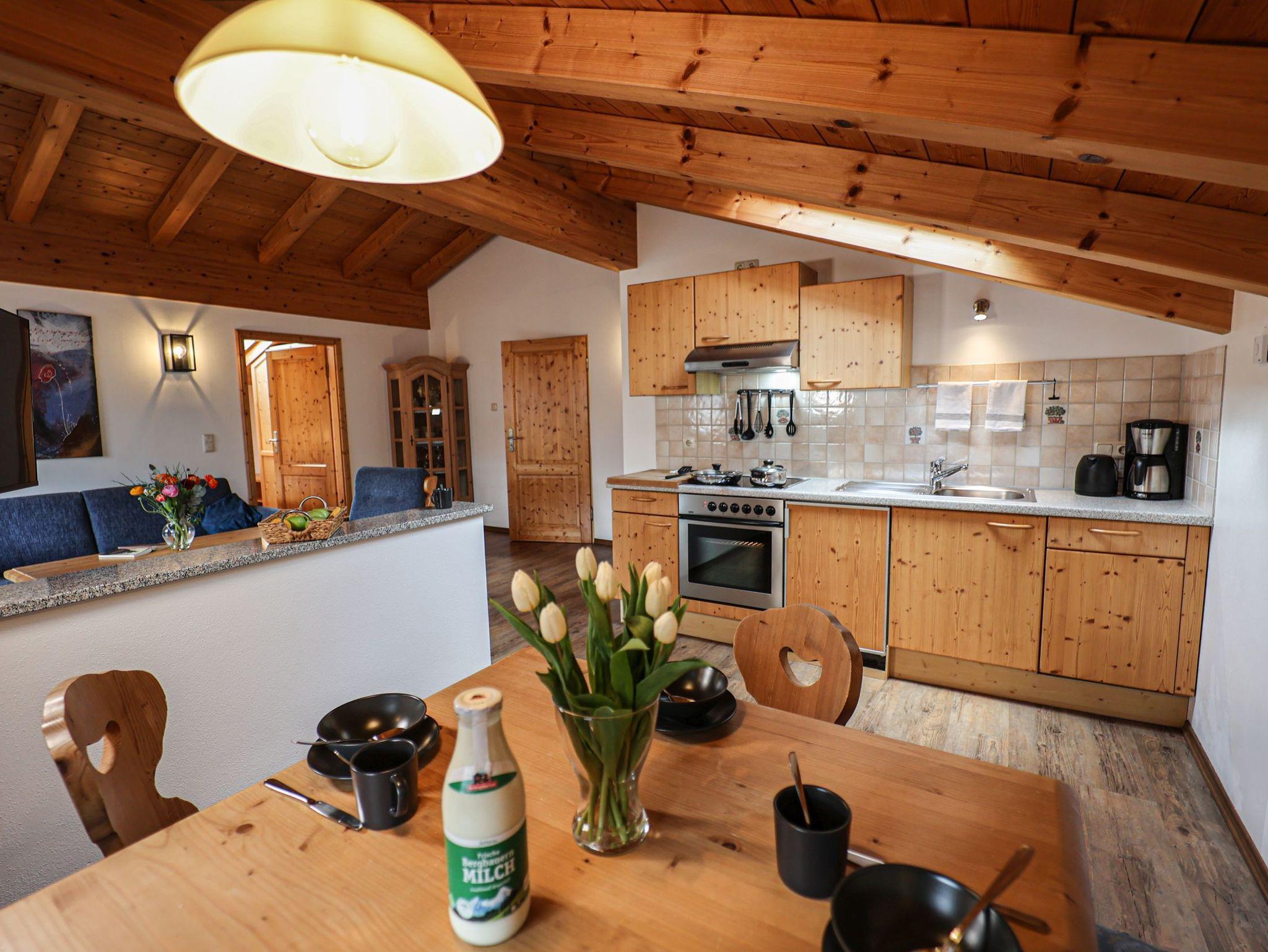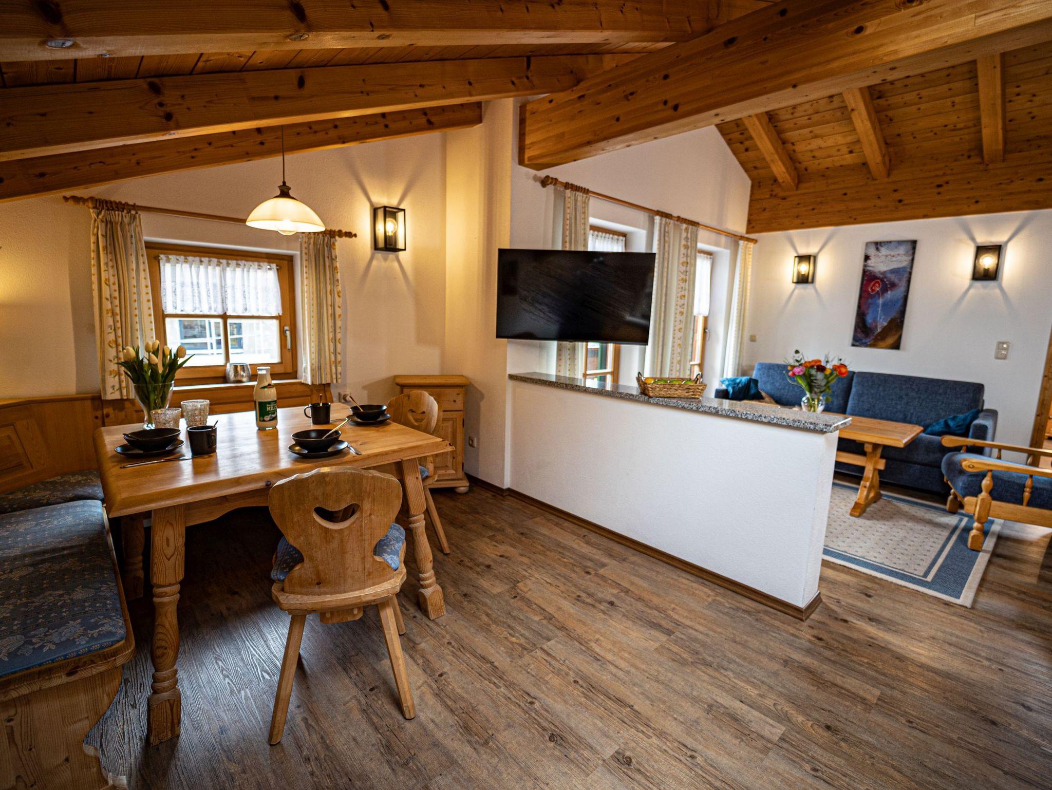 Die Wohnung ist vom Deutschen Tourismusverband (DTV) mit F**** ausgezeichnet worden!Die mit viel Naturholz ausgestattete Wohnung ist aufgeteilt in einen Vorraum; ein separates Schlafzimmer; ein Badezimmer mit Dusche und WC, Waschbecken; ein geräumiges Wohnzimmer mit Essbereich, eine ausziehbare Couch mit einem Schlafkomfort wie ein Bett und eine Kochnische.Die Ferienwohnung Nr. 2 liegt im Dachgeschoß und besitzt einen schönen Ost-Balkon mit Blick auf die Berchtesgadener Alpen.