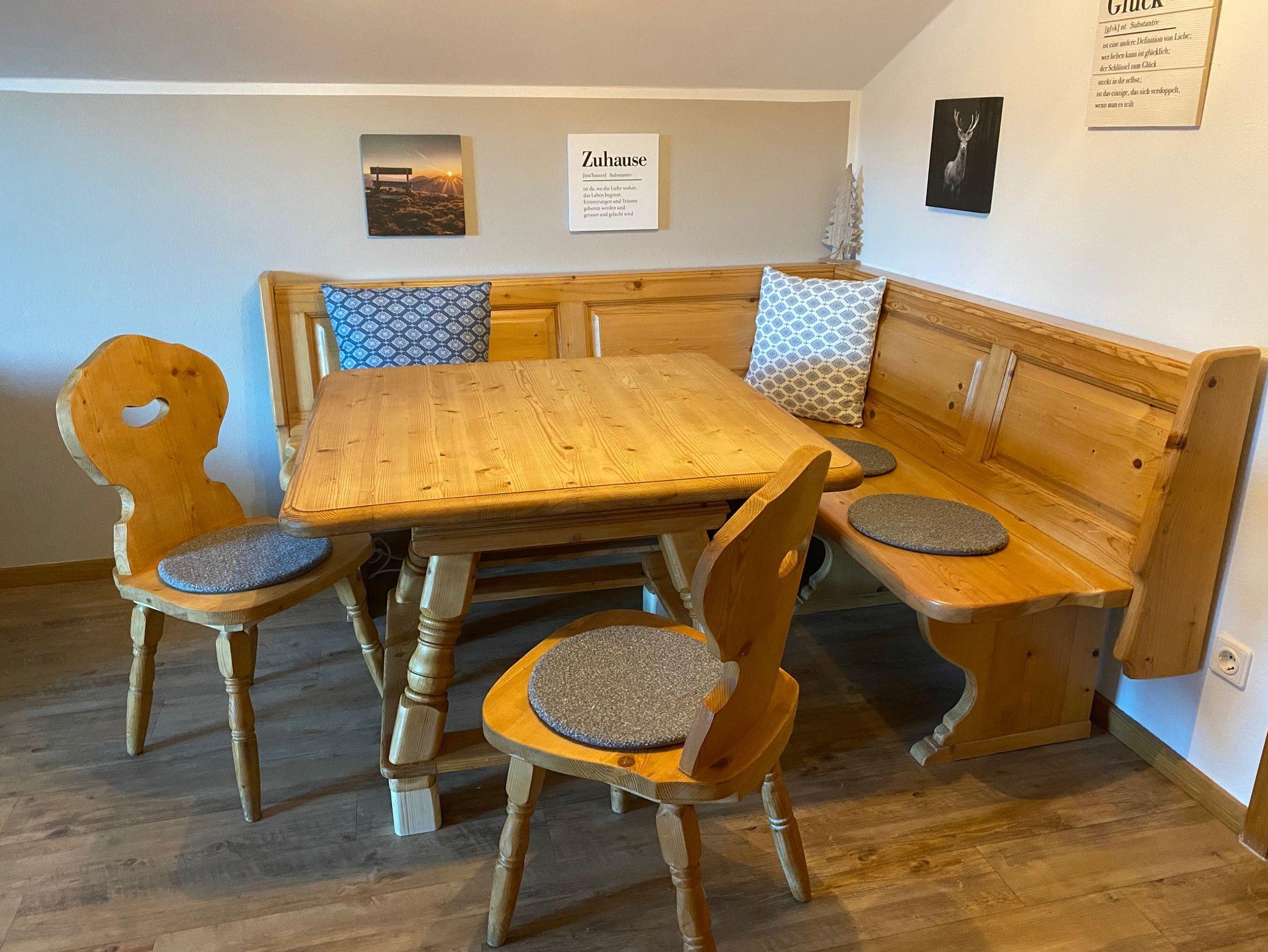Es erwarten Sie gemütliche, im Landhausstil eingerichtete Ferienwohnungen. Alle Ferienwohnungen haben ein Wohnzimmer mit Sat-TV, eine Küchenzeile mit 2-Plattenkochfeld und Kühlschrank (einzelne Wohnungen verfügen auch über eine separate Küche oder größere Küchenzeile mit Backofen), 1-3 Schlafzimmer und Balkon. Von fast allen Balkonen haben sie einen wunderbaren Blick auf die umgebende Bergwelt. Drei der Ferienwohnungen liegen im Erdgeschoss und haben einen separaten Eingang und eine kleine Terrasse bzw. einen Sitzbereich im Freien.