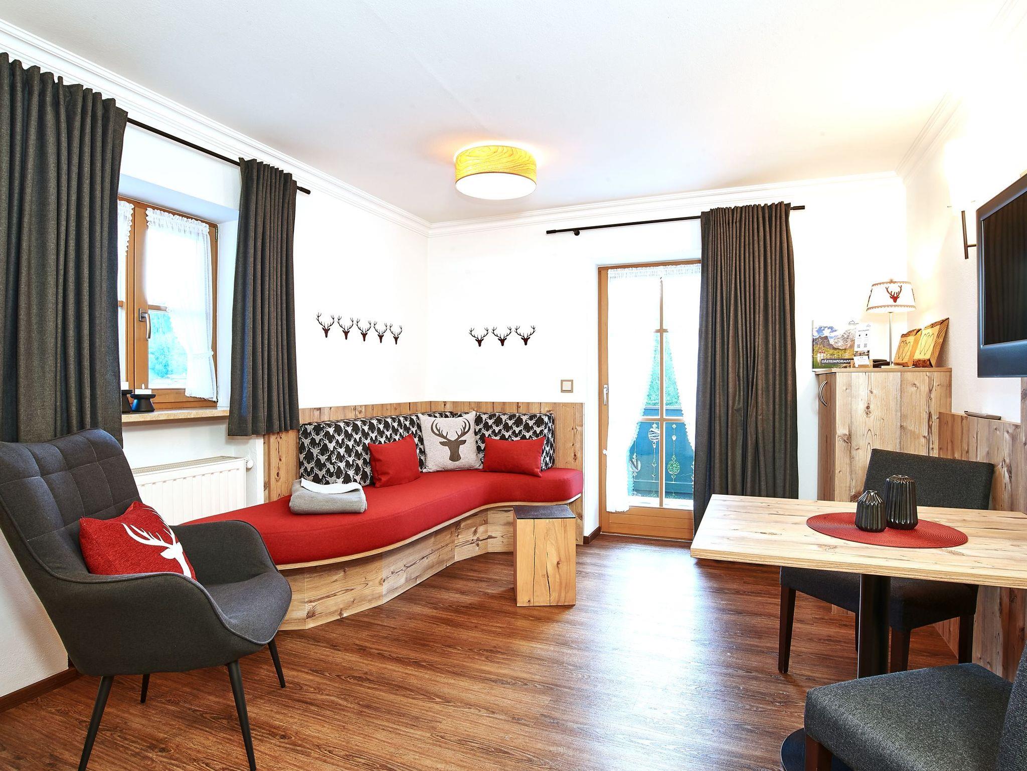 Bestimmt wird unser Zweizimmer- Apartment GAMSNEST Ihr Lieblingsplatz! Ein gemütlicher Wohnraum mit Kaffeeküche, Essecke und Schlafcouch sorgen für eine behagliche Stimmung, Sat-TV, Radio, WLAN, Telefon stehen zur Verfügung. Ein ruhiges Schlafzimmer sowie ein Bad mit Dusche/WC, Handtuchwärmer, Kosmetikspiegel, Waage, Fön und Fußbodenheizung gehören ebenfalls zur Ausstattung. Der Balkon erlaubt einen Panoramablick in Ostrichtung zum phantastischen Sonnenaufgang hinter dem Kehlstein. Buchen Sie auf