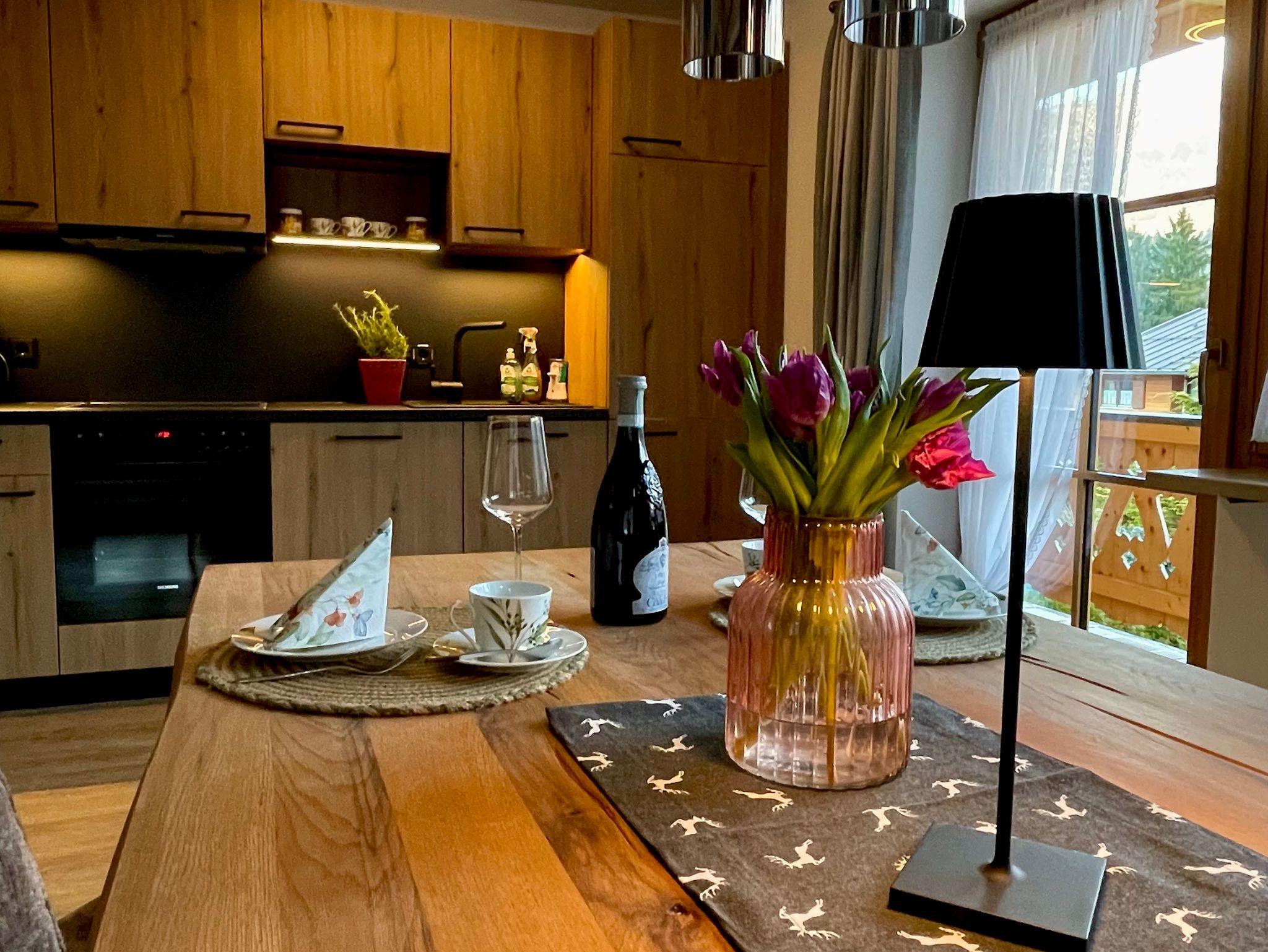 Unsere mit 4**** Sterne klassifizierte, neu erbaute Ferienwohnung befindet sich im Obergeschoß des Hauses Hochlenzerblick und ist durch eine Außentreppe erreichbar. Diese verfügt über einen eigenen sonnigen Balkon mit herrlichem Bergblick. Ausgestattet ist die Wohnung mit SAT-TV, WLAN, Wohnzimmer, Schlafzimmer, Küche mit Essbereich und einem modernen Bad. In der Küche finden Sie einen Herd mit Backofen, Geschirrspüler, Wasserkocher, Toaster, Kaffeemaschine, Eierkocher, sowie Kühl- und Gefrierschrank. Mit der Gästekarte können Sie die Busse des Regionalverkehr Oberbayern (RVO) kostenfrei nutzen.