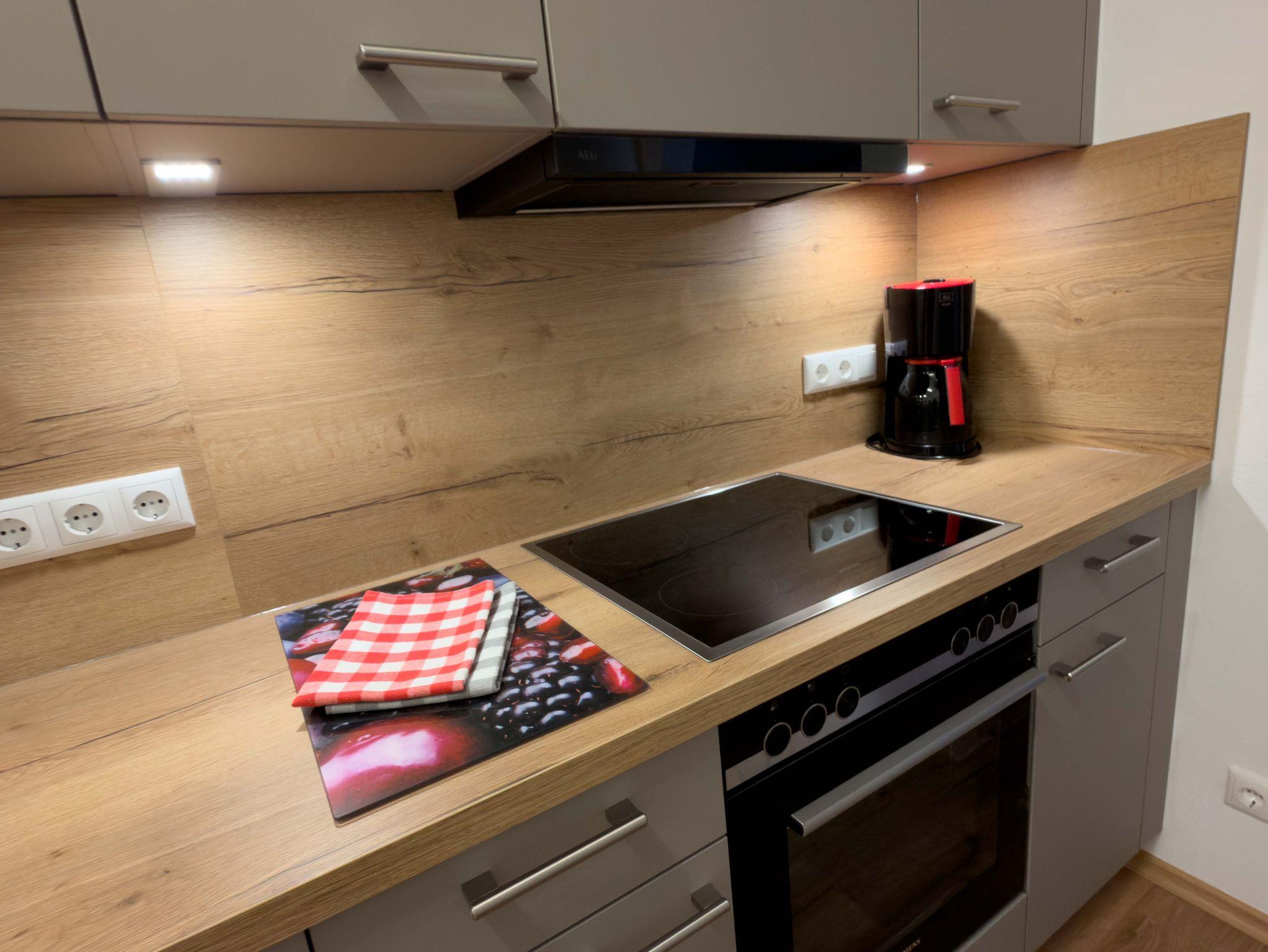• Die Ferienwohnung ist ausgestattet mit Geschirr, Töpfen, Toaster, Kaffeemaschine, Wasserkocher, Bettwäsche & Handtüchern.
