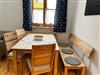 Der gemütliche Wohnbereich mit Essplatz für bis zu 5 Personen lädt zum gemeinsamen Essen und Verweilen ein. Ein großes Sofa und ein Sessel stehen natürlich auch zur Verfügung.