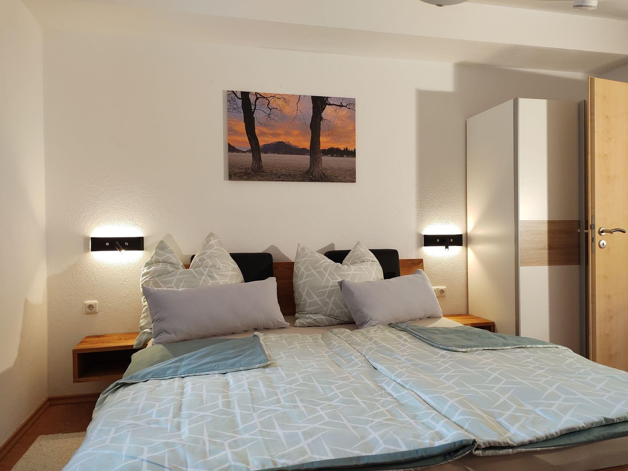 Im Schlafzimmer steht ein Doppelbett 1,80 x 2,00 m sowie ein Kleiderschrank und eine Kommode.