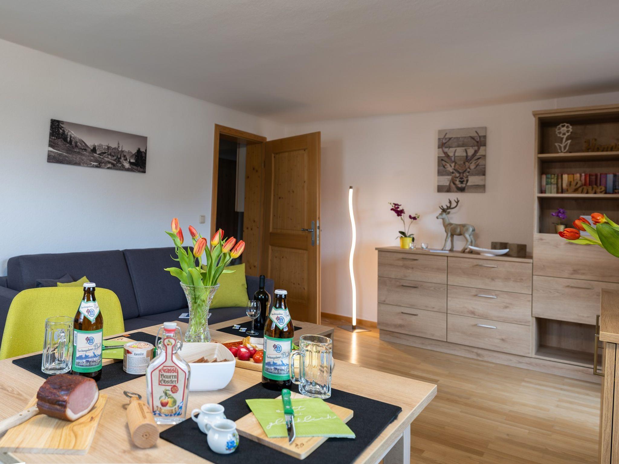 Die Ferienwohnung „Jenner“ im Haus Holzeck in Schönau am Königssee ist eine geräumige und gut ausgestattete Wohnung, die Platz für 2 Personen bietet. Die Wohnung verfügt über 1 Schlafzimmer, ein Wohnzimmer mit einer gemütlichen Sitzecke und einem schönen Essbereich, sowie eine voll ausgestattete Küche mit allen notwendigen Geräten und Utensilien für einen angenehmen Aufenthalt. Es gibt auch ein modernes Badezimmer mit bodenebener Dusche und WC. Die Wohnung bietet mit ihren großen Fenstern viel natürliches Licht und einen wunderschönen Blick auf die umliegende Natur. Es gibt auch einen Balkon, von dem aus man die Aussicht genießen kann. Unsere Ferienwohnung „Jenner“ bietet auch eine Reihe von Annehmlichkeiten, darunter kostenfreies WLAN, Parkplätze und eine Skiaufbewahrung. Sie ist ein perfekter Ausgangspunkt für Outdoor-Aktivitäten wie Wandern, Skifahren, Mountainbiken und vieles mehr. Insgesamt ist die Ferienwohnung Jenner im Haus Holzeck eine komfortable und gut ausgestattete Unterkunft in einer wunderschönen Umgebung, die sie zu einem perfekten Urlaubsziel für jeden Geschmack und jede Jahreszeit macht.