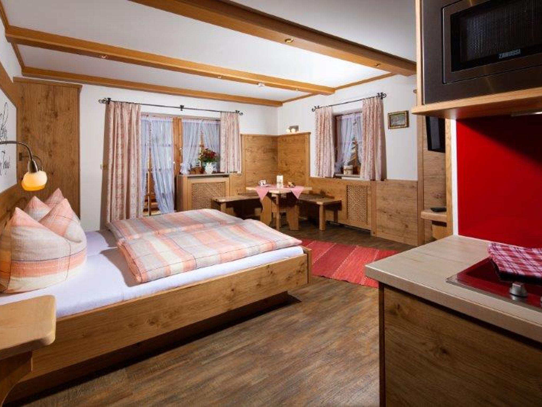Unser Appartement Sulzbergkopf ist ein komfortabel eingerichtetes Studio im modernen ländlichen Stil (im Herbst 2016 neu renoviert) und befindet sich im ersten Obergeschoß. Die Kochnische ist ausgestattet mit Kühlschrank, Spüle, 2 Platten E-Herd (Ceranfeld), Toaster, Eierkocher, Kaffeemaschine, Wasserkocher. Im modern gestalteten Badezimmer mit Dusche/WC werden Ihnen Handtücher bereitgestellt. Vom Balkon aus haben Sie einen herrlichen Blick auf den Watzmann sowie den Grünstein.