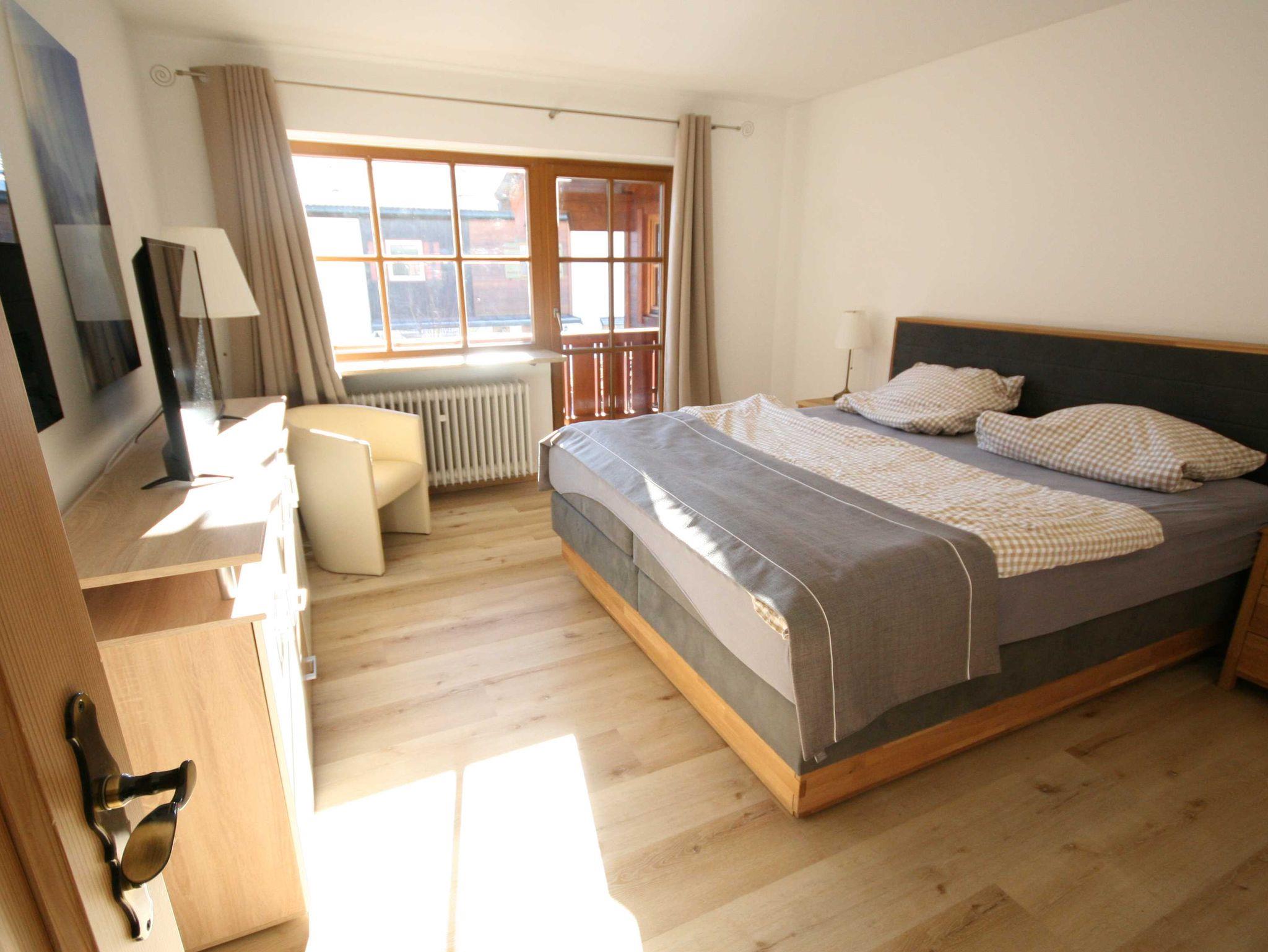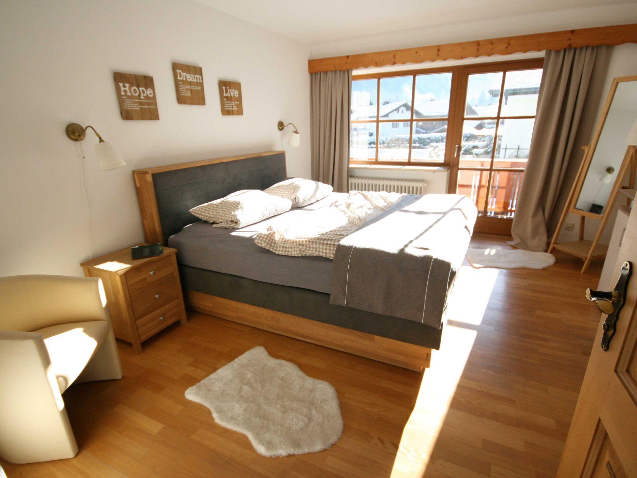 Drei von vier Schlafzimmern sind mit hochwertigen Boxspringbetten ausgestattet, sämtliche Schlafräume verfügen über Balkonzugang. Im Erdgeschoss führt über den Wohn- und Essbereich ein Zugang zu der großen Sonnenterrasse mit Blick auf das Bergpanorama Kehlstein/ Jenner/ Hohes Brett/ Hoher Göll. Im Sommer lädt eine große Loungegarnitur und Sitz- sowie Essmöbel zum Verweilen und Grillen ein. Eine Sonnenmarkise- und Schirm sorgen für genug Beschattung.