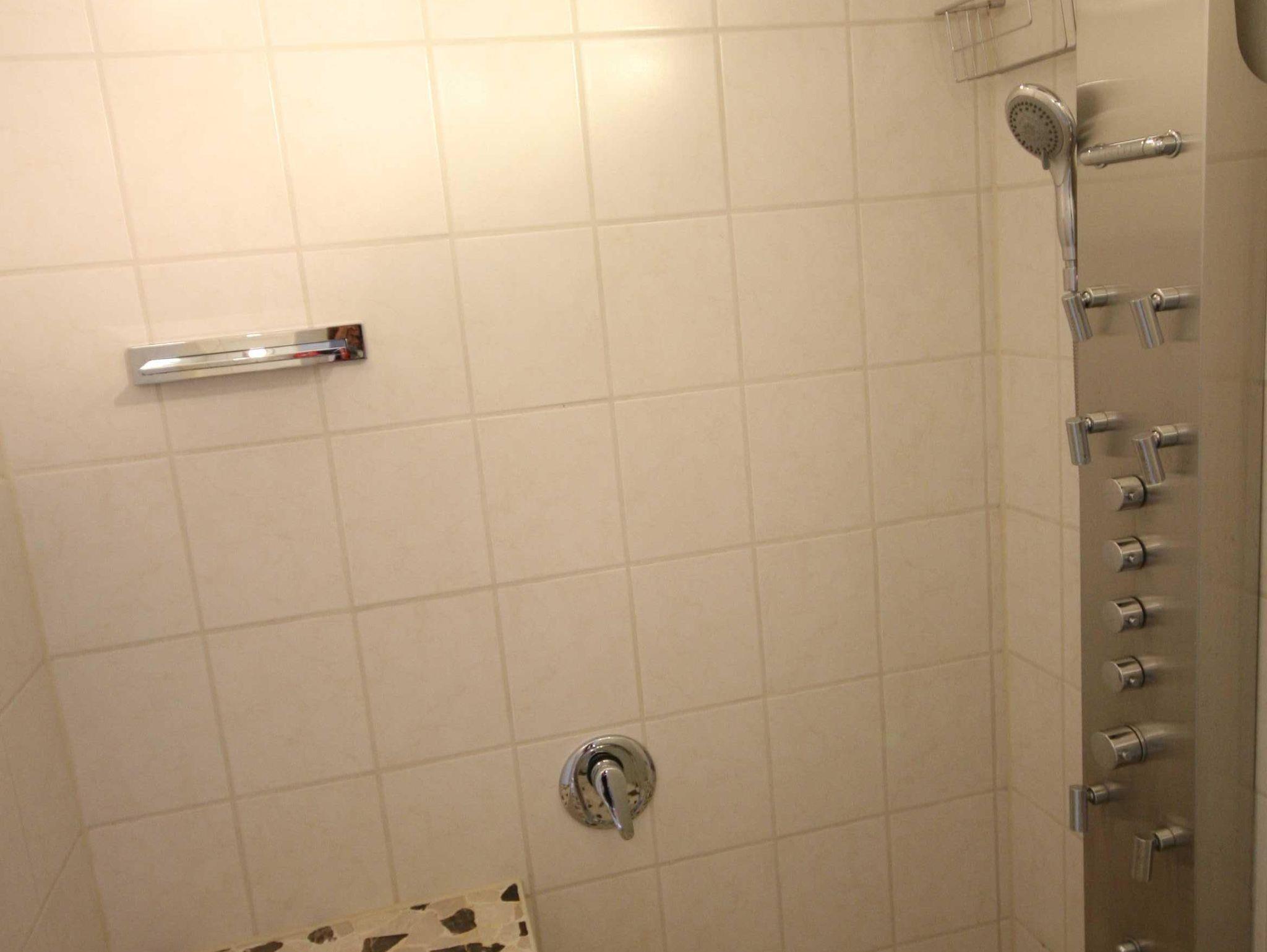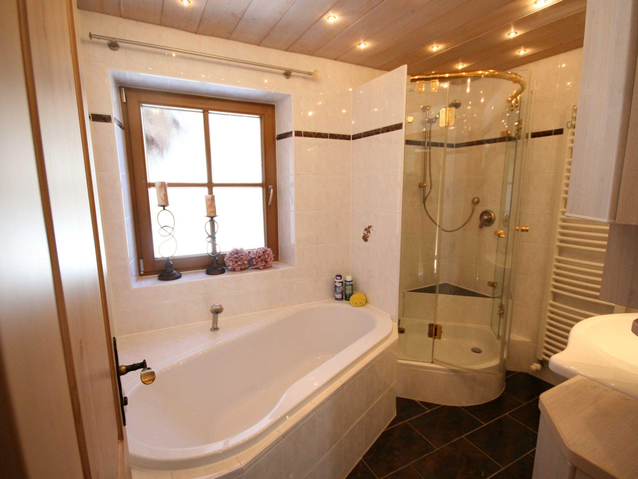 Die Alpenoase verfügt über einen großzügigen Sauna- und Ruhebereich mit Schwalldusche und Tageslichtfenster.