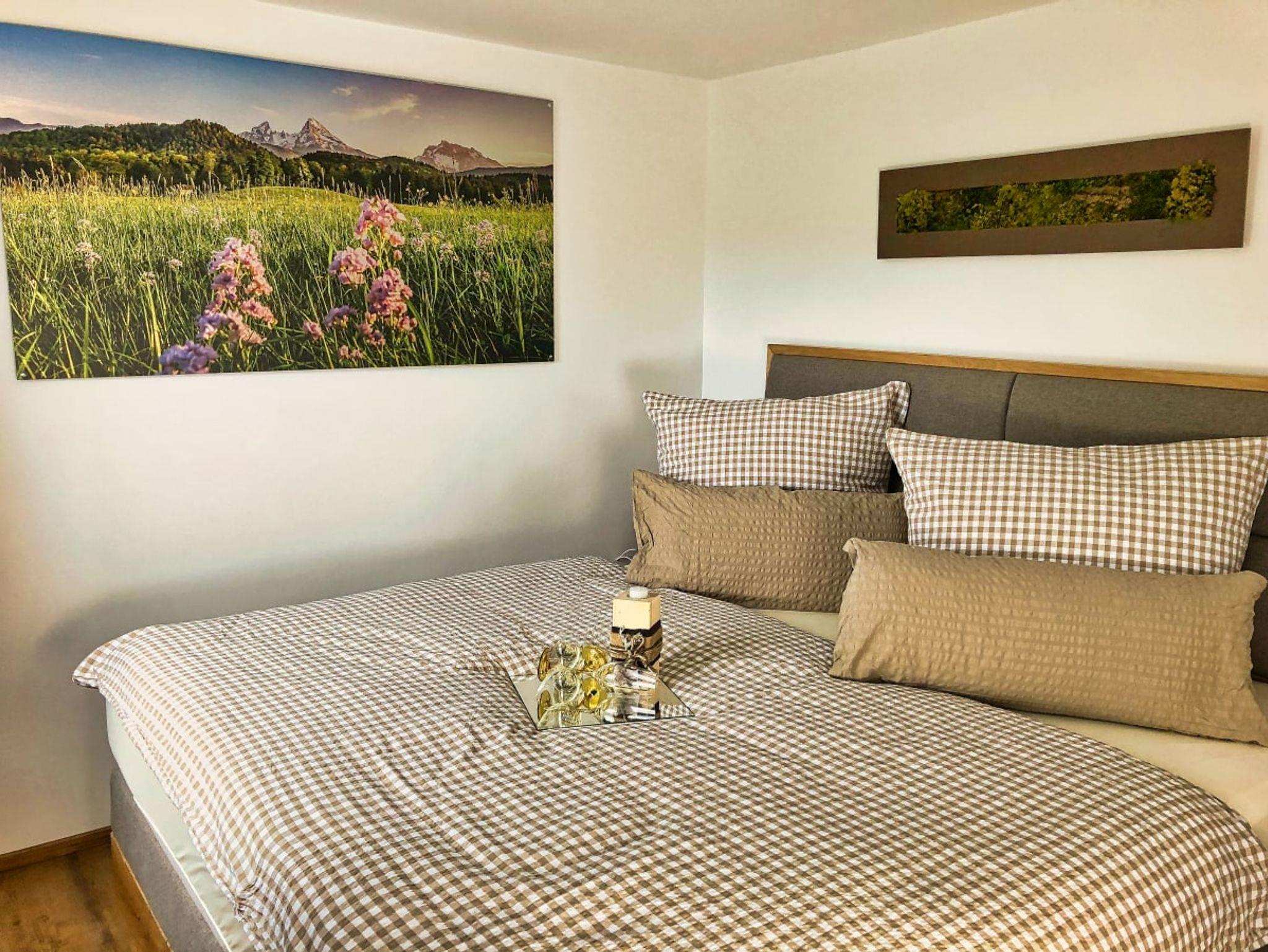 Für Ihren Aktivurlaub mit Freunden, als auch für Ihren Familienurlaub können Sie 165 m² Ihr Eigen nennen. Ein einheitlich abgestimmtes, dezentes Ambiente durch helle Erd- und Naturtöne, verspricht eine behagliche Wohnatmosphäre. Das Wohnzimmer besticht durch eine gemütliche Sitzlandschaft und lädt zum Verweilen und ausgedehnten Unterhaltungen ein. Die voll ausgestattete Küche mit angrenzendem Wohn- und Essbereich bietet eine wunderbare Gelegenheit für gemeinsame Koch – oder entspannte Spieleabende. 5 individuell ausgestattete Schlafzimmer erstrecken sich über beide Etagen und bieten Ihnen eigene Ruhezonen. Die Tageslichtbäder zeichnen sich durch ein Zusammenspiel von Naturelementen und klaren Formen aus. Im Obergeschoss finden Sie zudem ein weiteres separates WC. Ein großzügiger Garten mit Kräuterbeet und Grillplatz schenkt zusätzliche Entfaltungsmöglichkeiten und eröffnet einen beeindruckenden Blick in die Berchtesgadener Bergwelt.