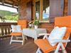 Eine gemütlich eingerichtete Ferienwohnung (54 qm) im 1. Obergeschoss ausgestattet mit separatem Schlafzimmer, sowie Bad mit Dusche und WC. Diese Wohnung verfügt über einen großen Balkon (2m x 6m ) mit Sitzecke und Sonnenliegen der in den Garten gerichtet ist. Ferner gehört zu dieser Ferienwohnung ein großes Wohnapartment mit Couch, großem Couchtisch und Fernseher, einer Eckbank mit Esstisch, eine Küche komplett ausgestattet mit Kühl-, Gefrierschrank, Ofen mit Kochfeld, Mikrowelle, Kaffeemaschine, Toaster und ebenfalls einen Balkon Richtung Sonnenaufgang. In diesem Raum befindet sich eine Schlafmöglichkeit für 2 Personen (Bett 90 x 200 cm, ausziehbar auf ein weiteres Bett, ebenfalls 90 x 200cm).