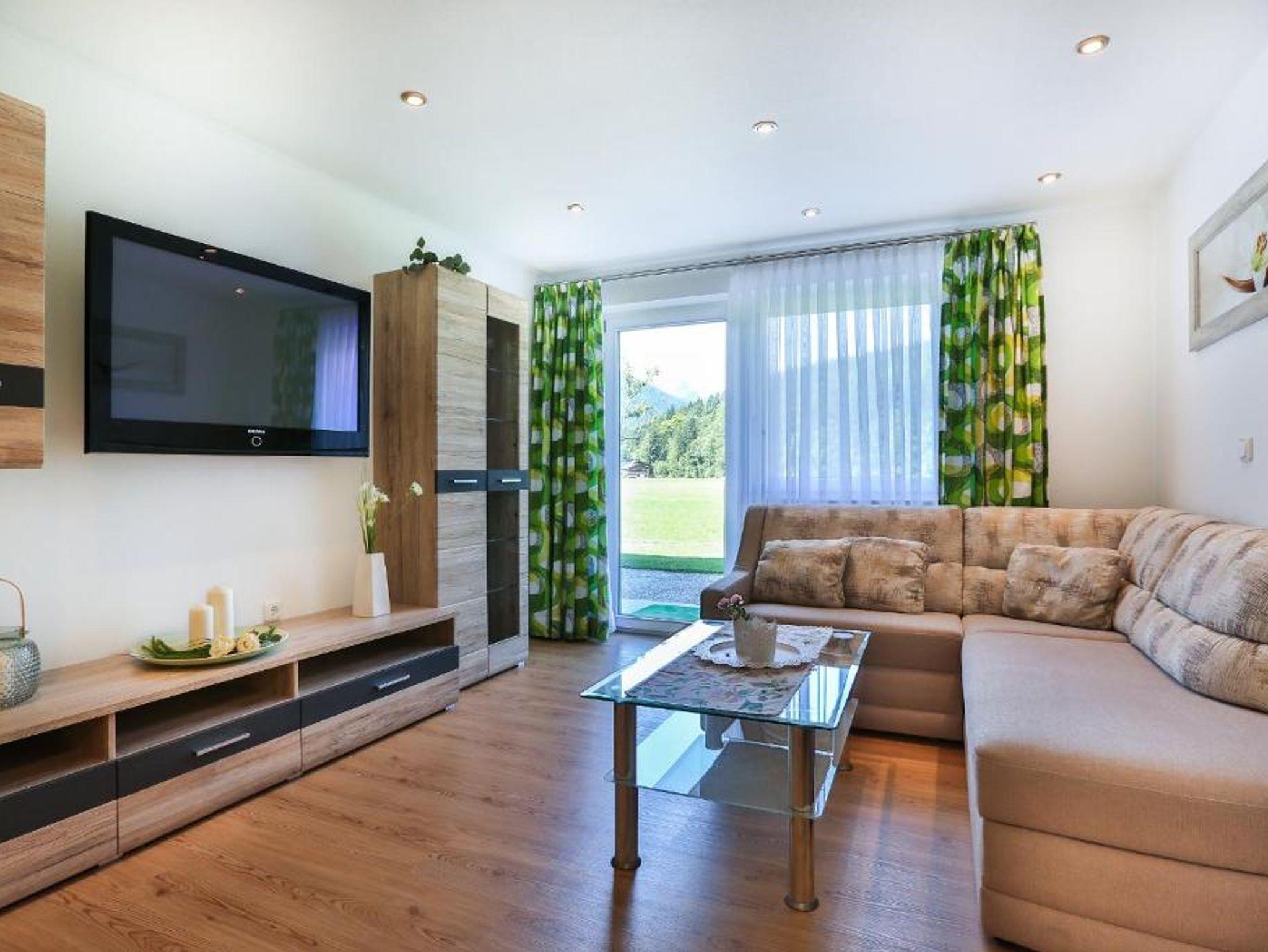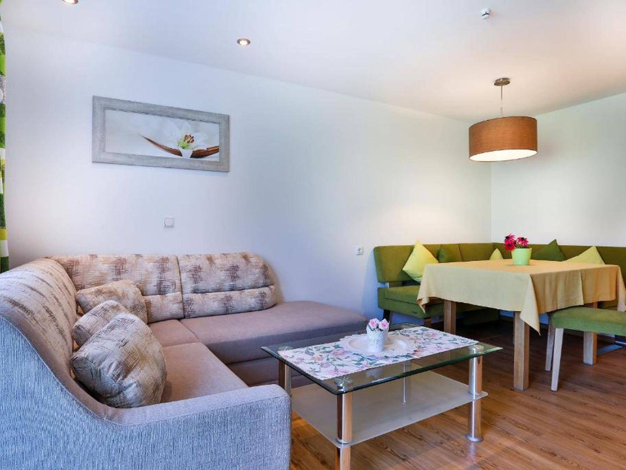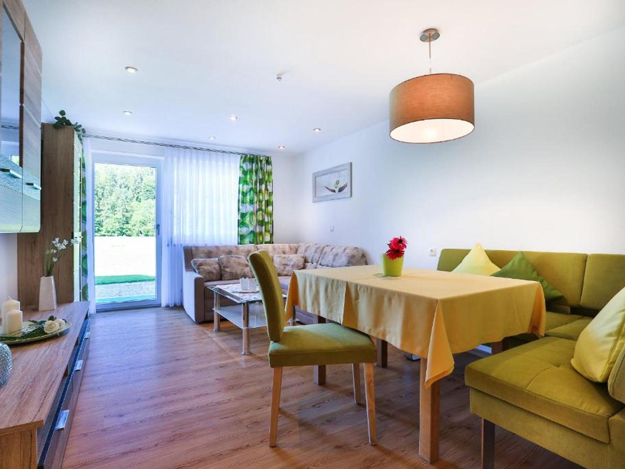 Die Ferienwohnung bietet Platz auf ca. 40 qm und ist ausgestattet mit einem separaten Schlafzimmer, einem kombinierten Wohn- Schlafraum mit Sitzgruppe, Kabel-TV, Radio, einer Küche mit Essecke sowie einem Bad mit Dusche/WC. Auf der möblierten Terrasse genießen Sie einen herrlichen Bergblick. Brötchenservice möglich.