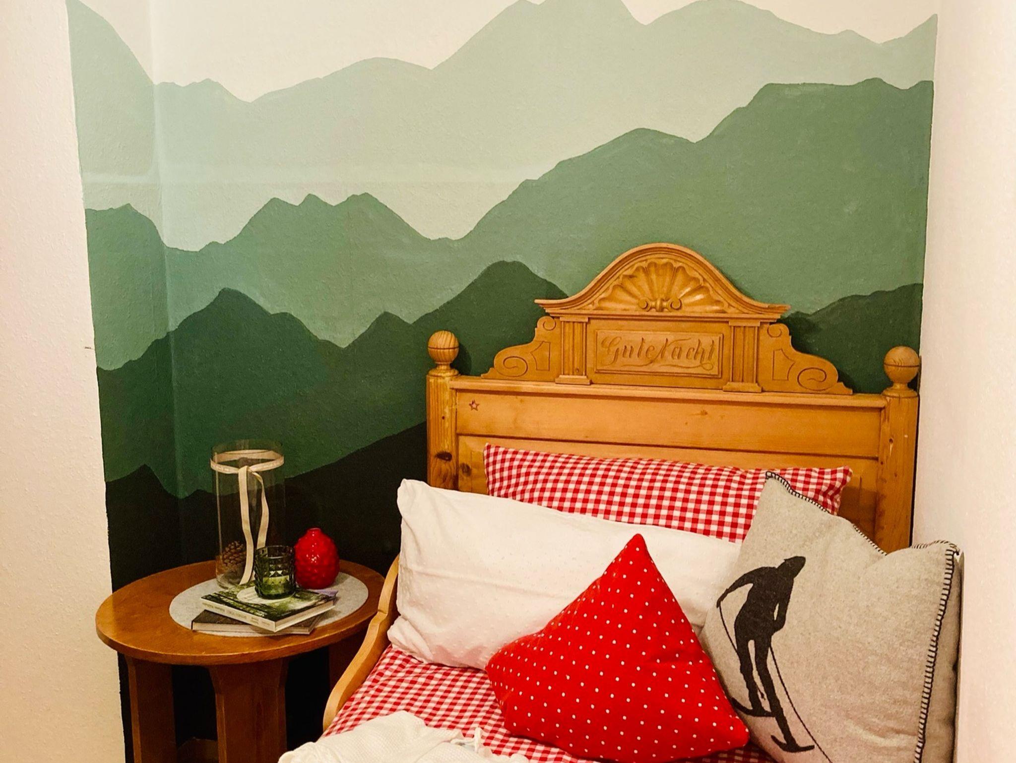 Unser spezieller Freiraum mit altem Holzbett, gemütlichen Kissen und Schaffell ist für Ihre Entspannung da. Nutzen Sie diesen kleinen Extraraum, wenn Sie ungestört schlafen möchten oder für Ihre kleinen Wellnessmomente nach den Bergtouren. Aromatherapie, Arnikaöl, Latschenkiefereinreibung, Akupressurmatte, vielseitige Lektüre: Wanderfüher, Zeitungen, Romane etc.