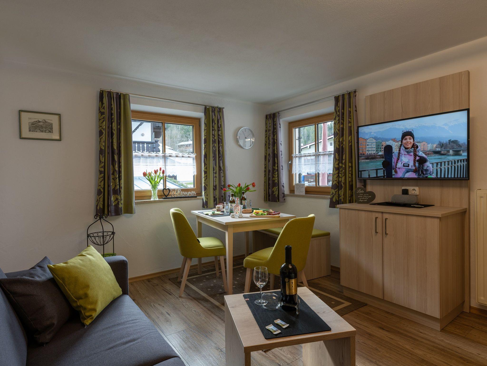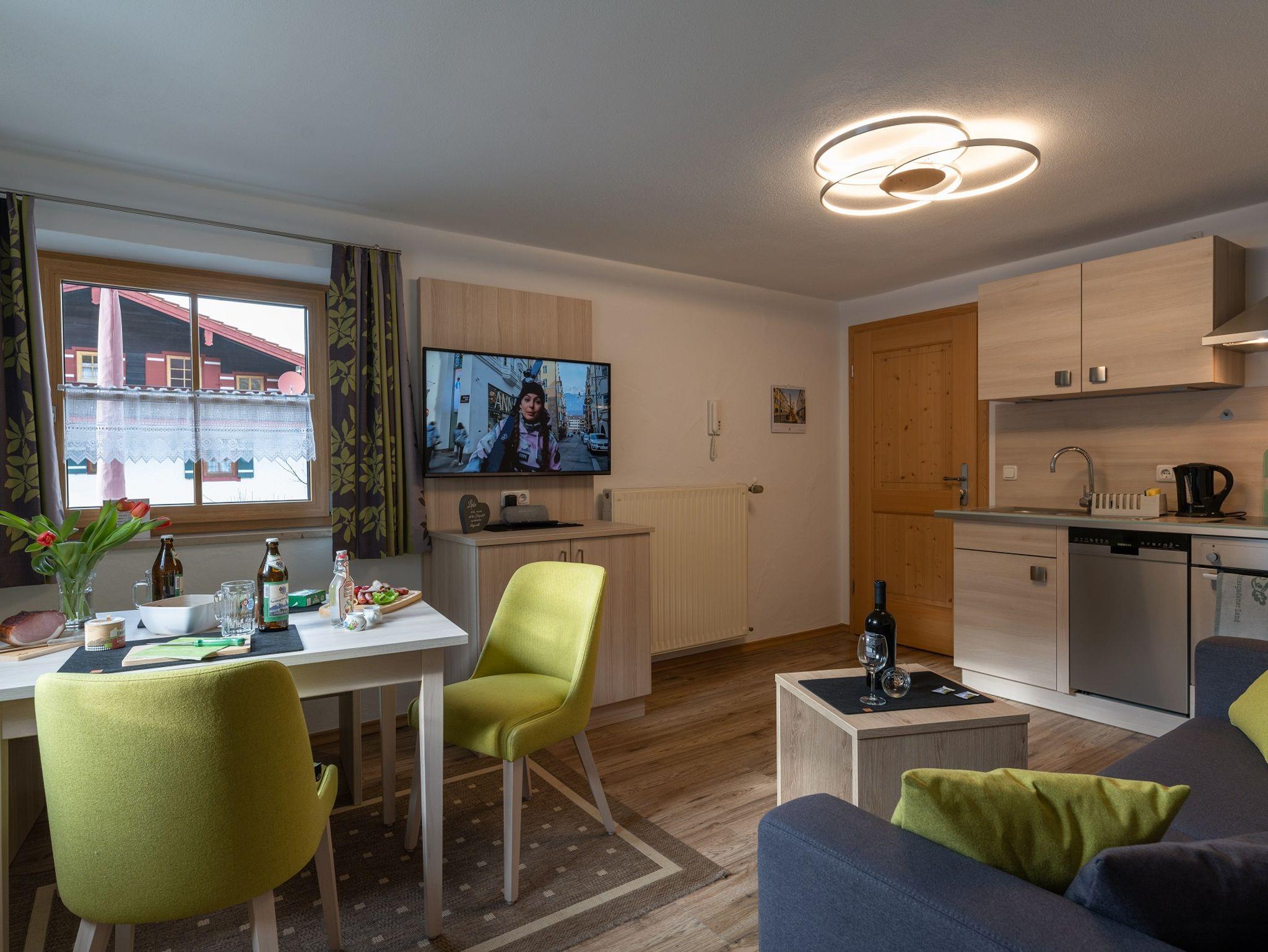 Die Ferienwohnung Grünstein ist eine geräumige und moderne Wohnung, die Platz für 2 Personen bietet. Sie verfügt über 1 Schlafzimmer, ein Wohnzimmer mit einer komfortablen Sitzecke und einem Essbereich, sowie eine voll ausgestattete Küche mit allen notwendigen Geräten und Utensilien.
