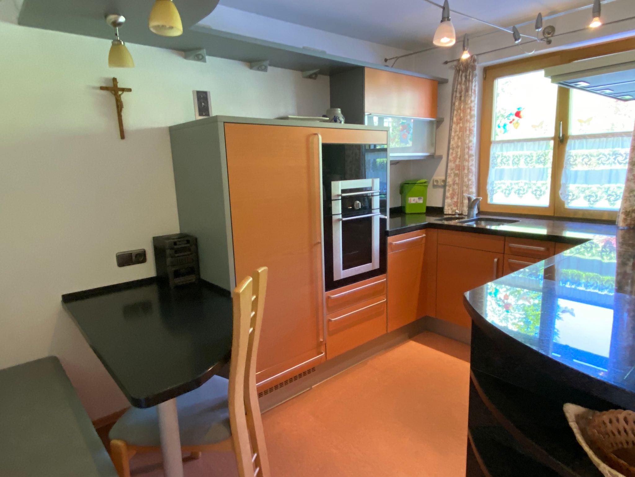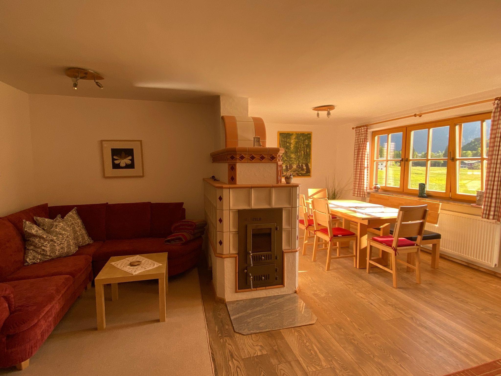 Diese Nichtraucher-Ferienwohnung umfasst 65 qm und befindet sich im Anbau des Gästehauses. Sie ist ausgestattet mit zwei separaten Schlafzimmern (eines mit Doppelbett und das andere mit Etagenbett), einen Wohn- Essraum mit gemütlicher Sitzecke, Essecke und Kamin (kann auf Wunsch befeuert werden) und einer vollausgestatteten Küche. Im geräumigen Bad stehen Handtücher und Fön für Sie bereit. Das WC ist separat. Auf der Terrasse genießen Sie den traumhaften Blick auf den Watzmann.