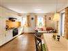 Wohnraum mit Einbauküche (Kühlschrank mit Gefrierfach, neuem Ceranfeld-Herd mit Backrohr, Kaffeemaschine, Wasserkocher, Toaster), Essecke, Sofa, neuer 43-Zoll-Flachbild-SAT-TV, Sicherheits-Safe für Wertsachen, Vinyl-Boden und Ausgang zum Süd-Balkon;