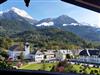 Behagliches Doppelzimmer mit Dusche/WC und Balkon mit Blick auf die grandiose Berchtesgadener Bergwelt.